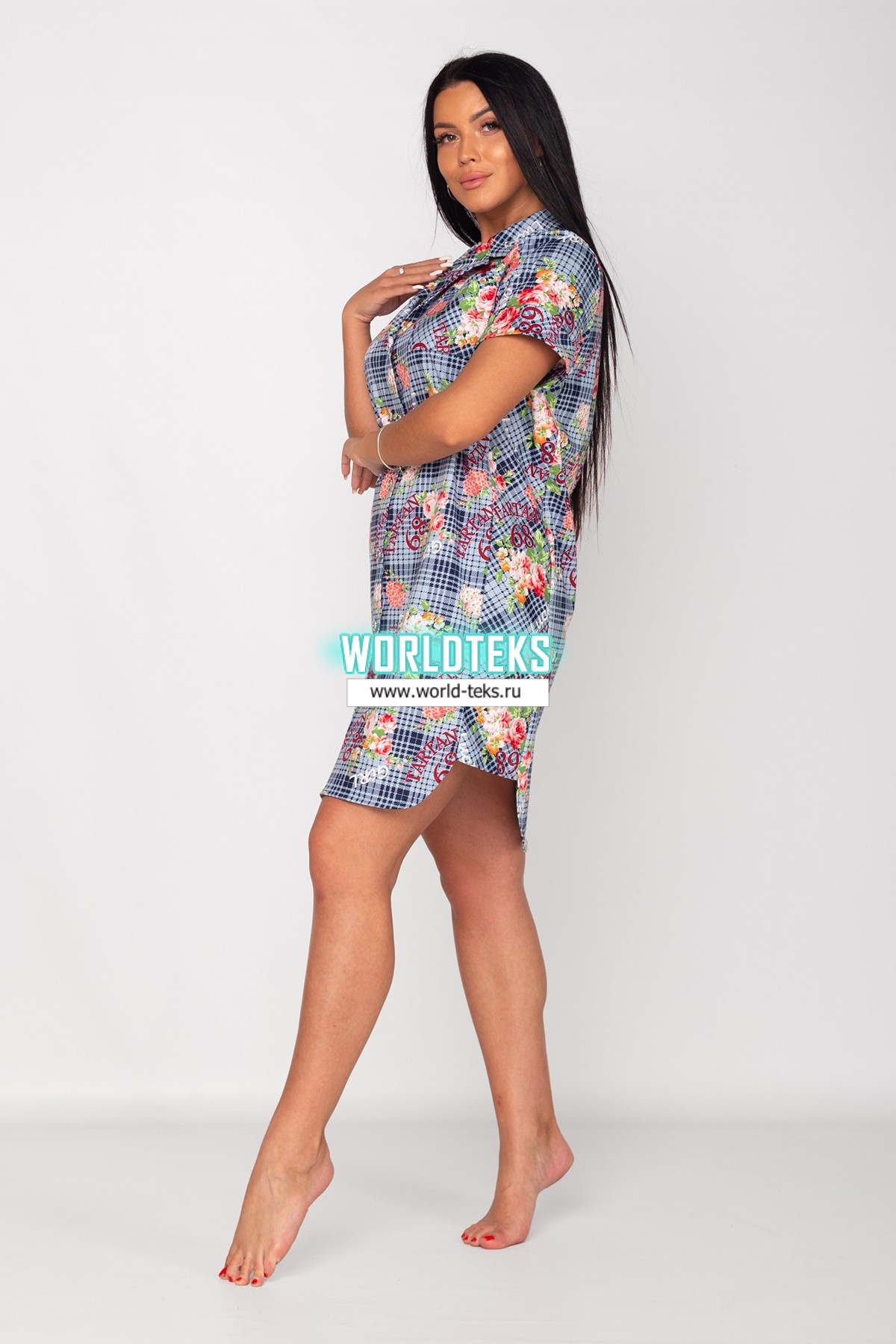 Халат на пуговицах "Кира" (голубой) №ДТР-К-147-7
