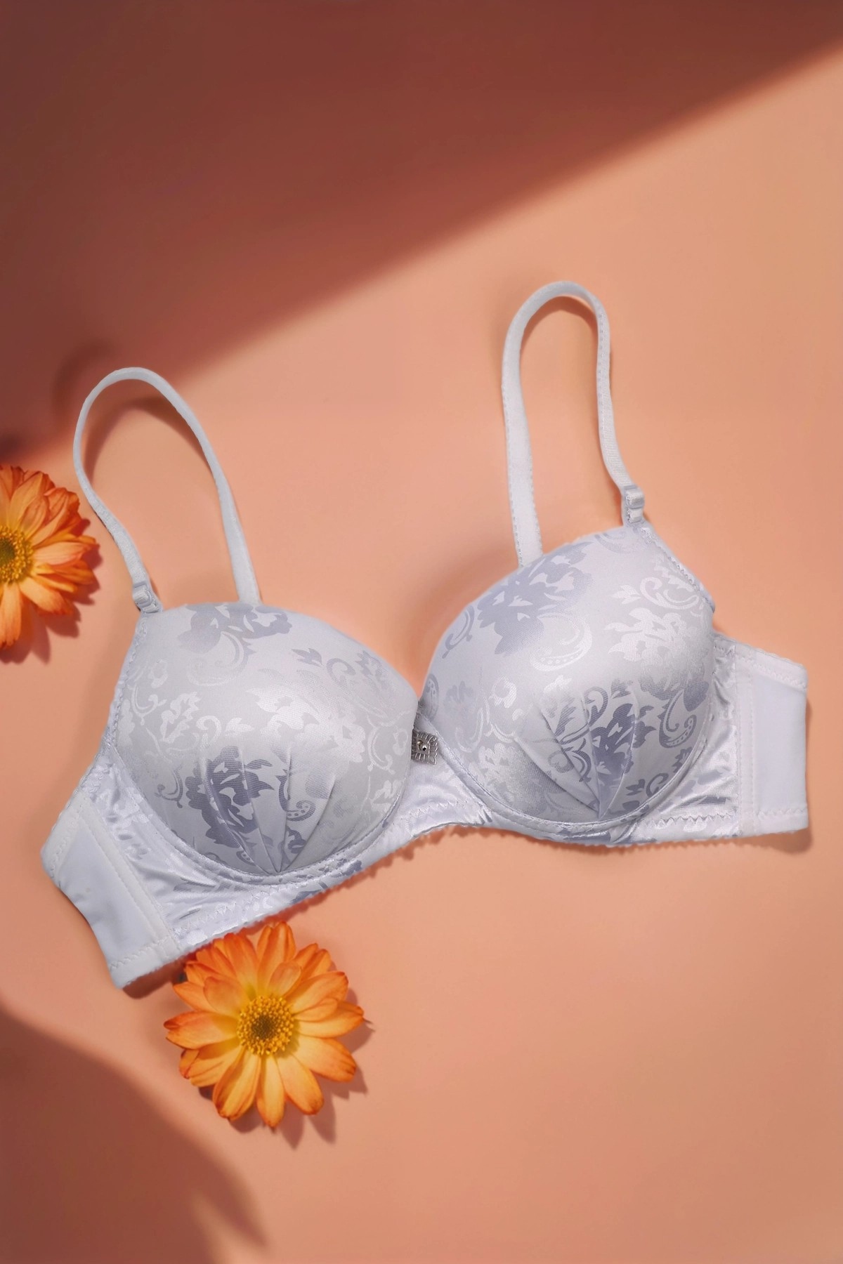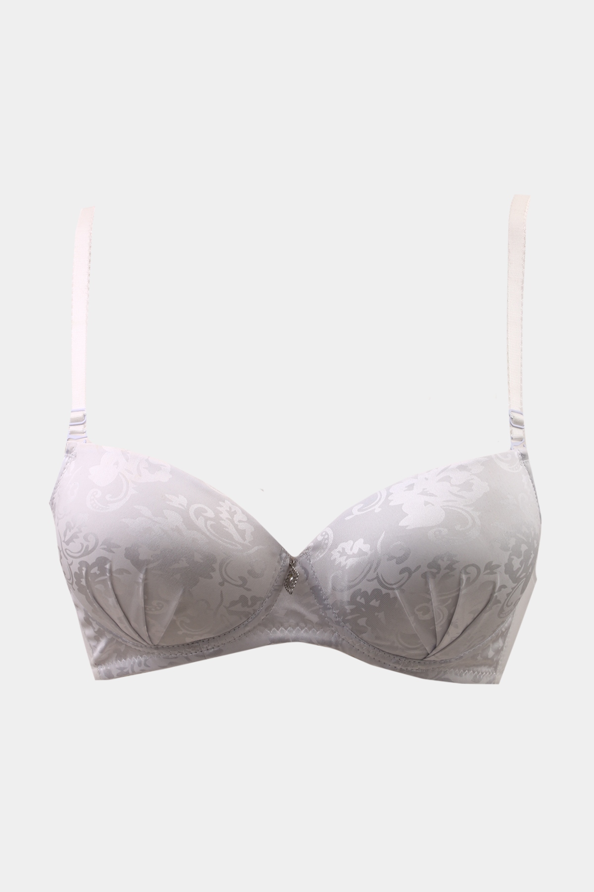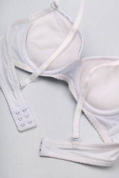 Женский бюстгальтер с чашками и косточками. Застежка на крючки и петли сзади. Съемные бретели регулируются по длине. Бюстгальтер украшен посередине.