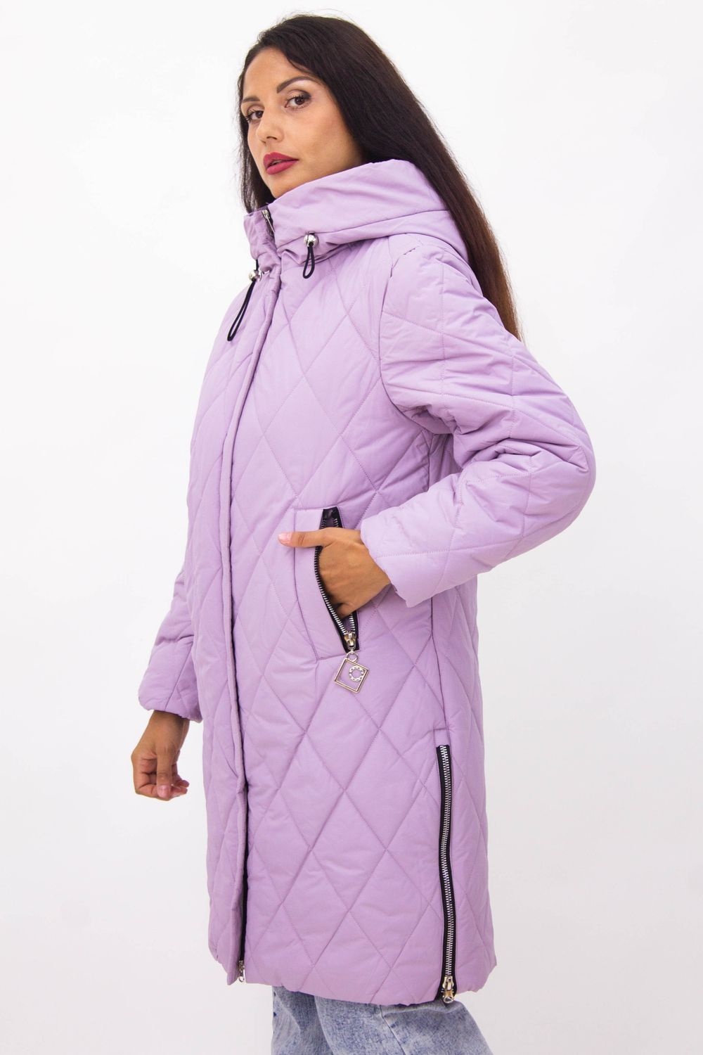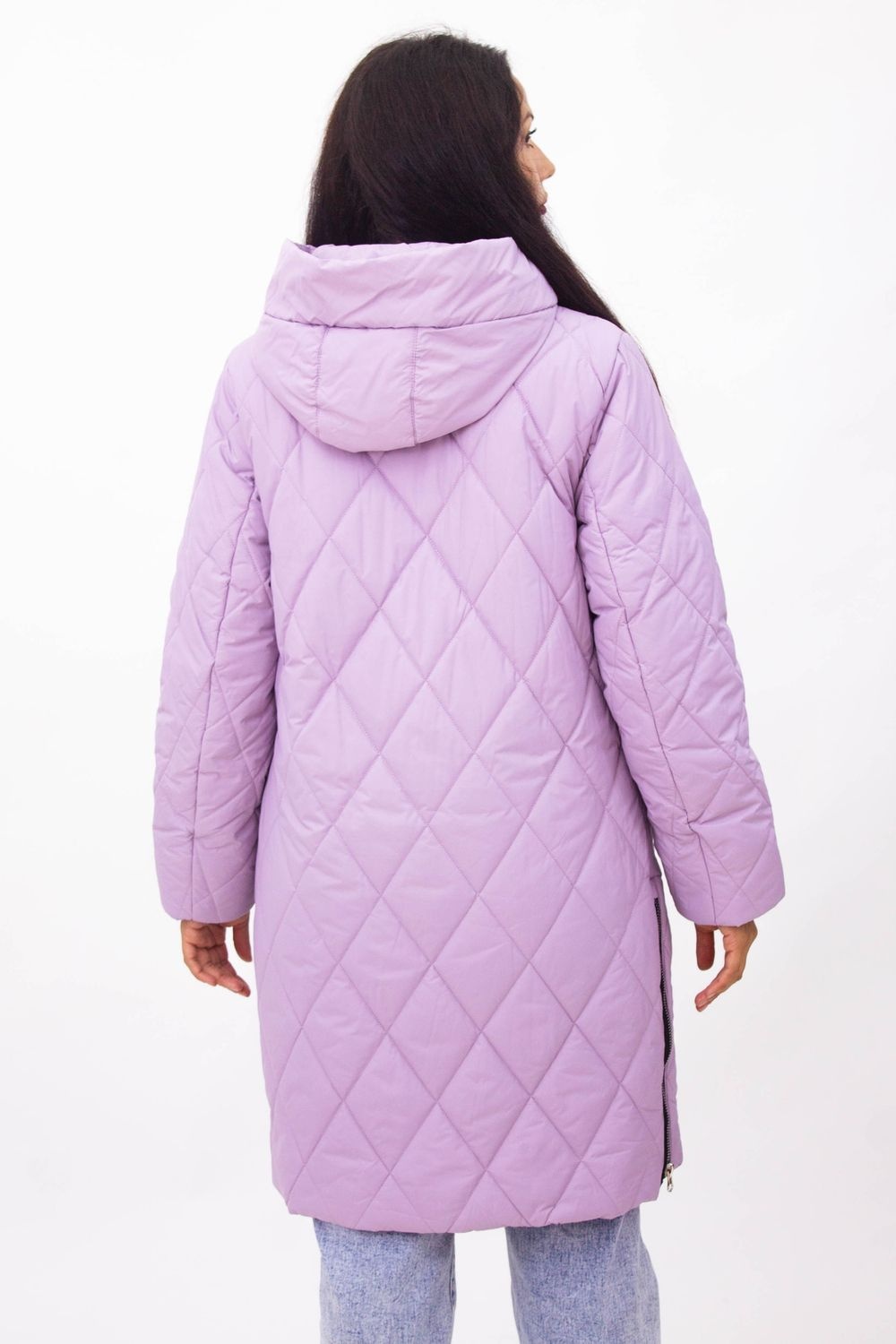 Демисезонная женская куртка удлиненная с капюшоном арт. - сиреневый №Н-2819
