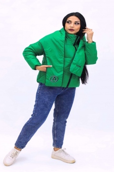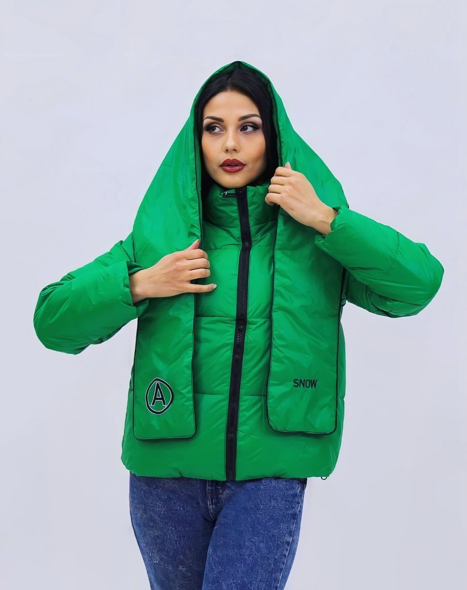Демисезонная женская куртка весна осень +дутый шарф-косынка 8193 - зеленый