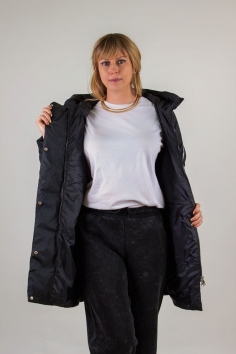 Капюшон с фиксаторами позволяет легко подстроить посадку сохранив тепло и исключив продувание. Центральная двусторонняя молния дополнена планкой на кнопках.