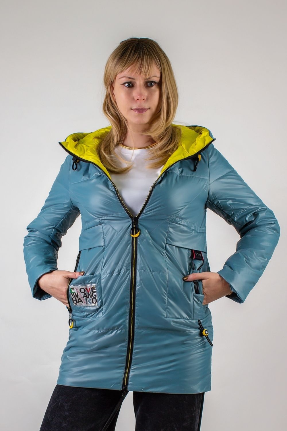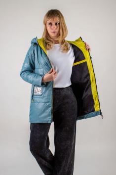 Основной цвет куртки – нежный, мягкий бирюзовый - этот трендовый оттенок прекрасно освежает образ и легко сочетается с любой одеждой. Особую пикантность и динамичность модели придает элегантный желтый акцент, который искусно интегрирован в дизайн. Он эффектно контрастирует с классической черной молнией, подчеркивая стиль и индивидуальность куртки. Желтый элемент также присутствует на части внутренней подкладки капюшона и части общей подкладки, создавая гармоничный и завершенный образ. Черные фиксаторы на капюшоне, выполненные в тон молнии, добавляют лаконичности и практичности.