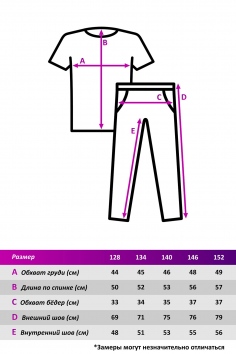 Легкий трикотажный костюм на девочку, состоящий из футболки и штанов, представляет собой идеальный выбор для маленьких модниц. Футболка имеет короткие рукава и круглый вырез горловины. Штаны на резинке обеспечивают комфортную посадку на талии и не сползают вниз.