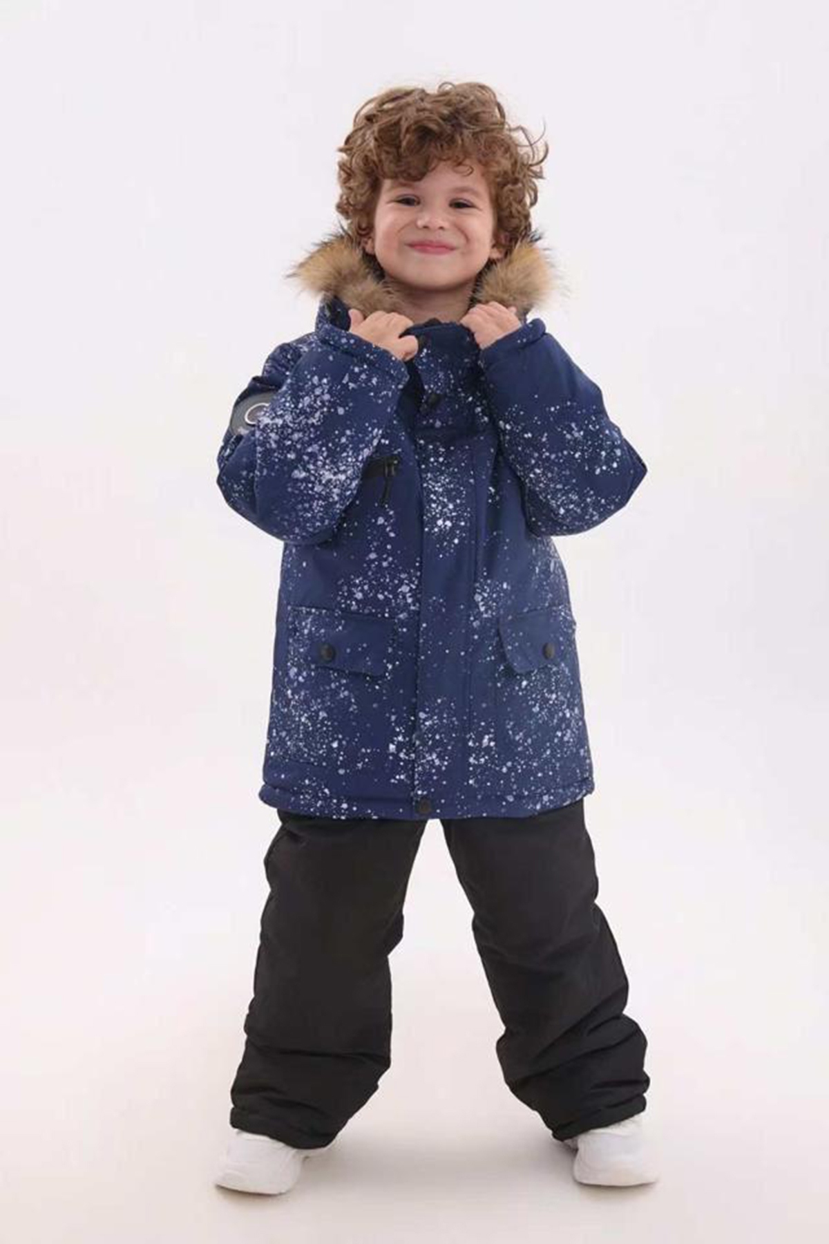 Зимний костюм для детский. Глубокий капюшон с регулировкой. Мягкая теплая флисовая подкладка по спинке. Брюки утепленные для мальчика имеют регулируемые бретели и снегозащитную резинку на талии.