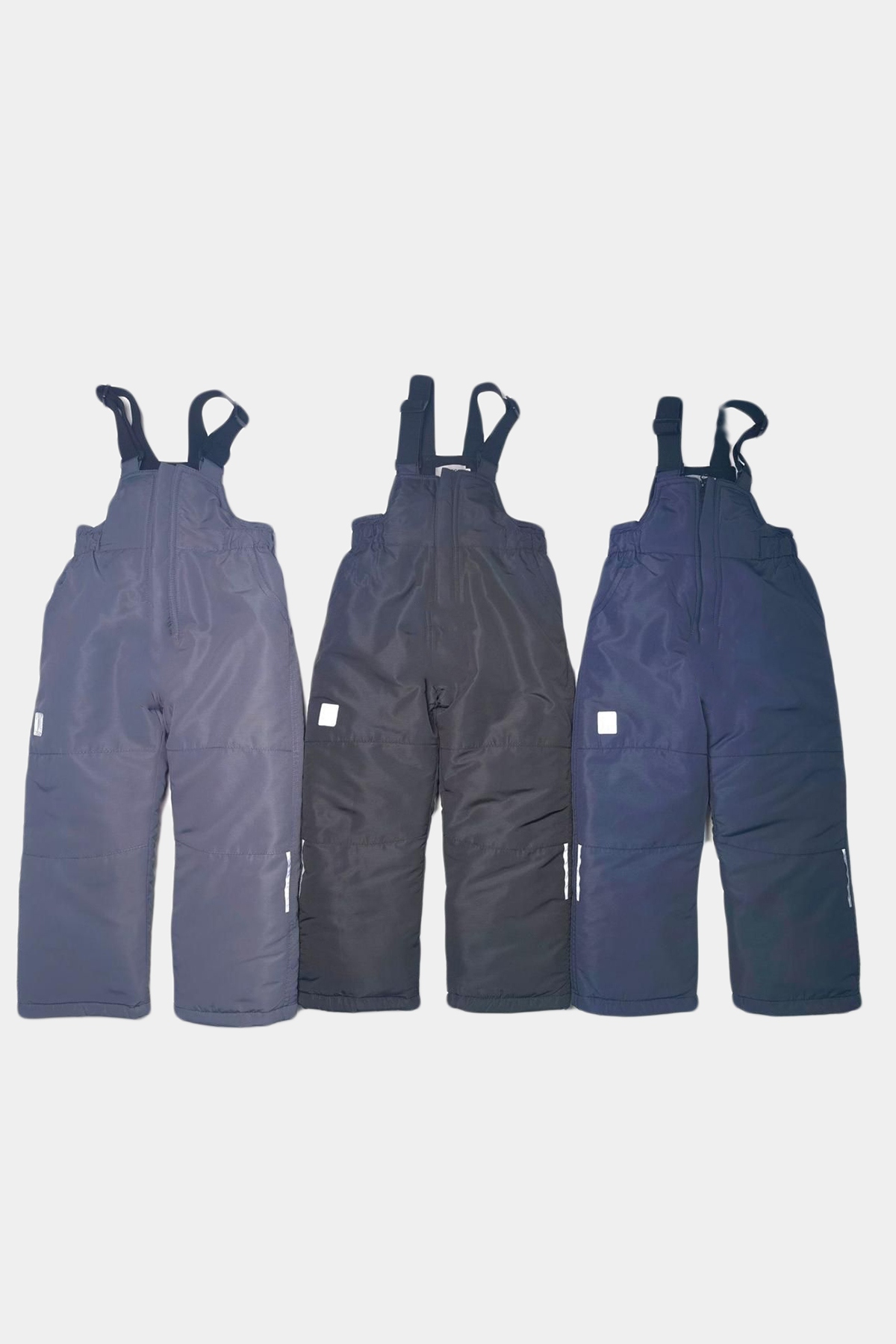 Утепленный полукомбинезон для прохладной осени и зимы (в зависимости от наличия промежуточного слоя одежды). Удобные подтяжки регулируются в длину. Линия талии на резинке. Низ брючин на резинке. Изготовлен из влагозащитной, непродуваемой ткани, которая надежно защищает от влаги и ветра. Спереди два кармана.