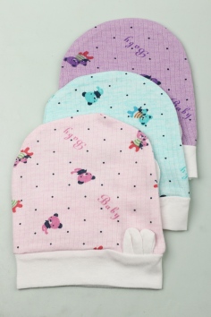 0-3 мес. шапка - 28-33 см (обхват головы); нагрудник - 28 х 17 см; царапки - 7см (ширина ладони).
