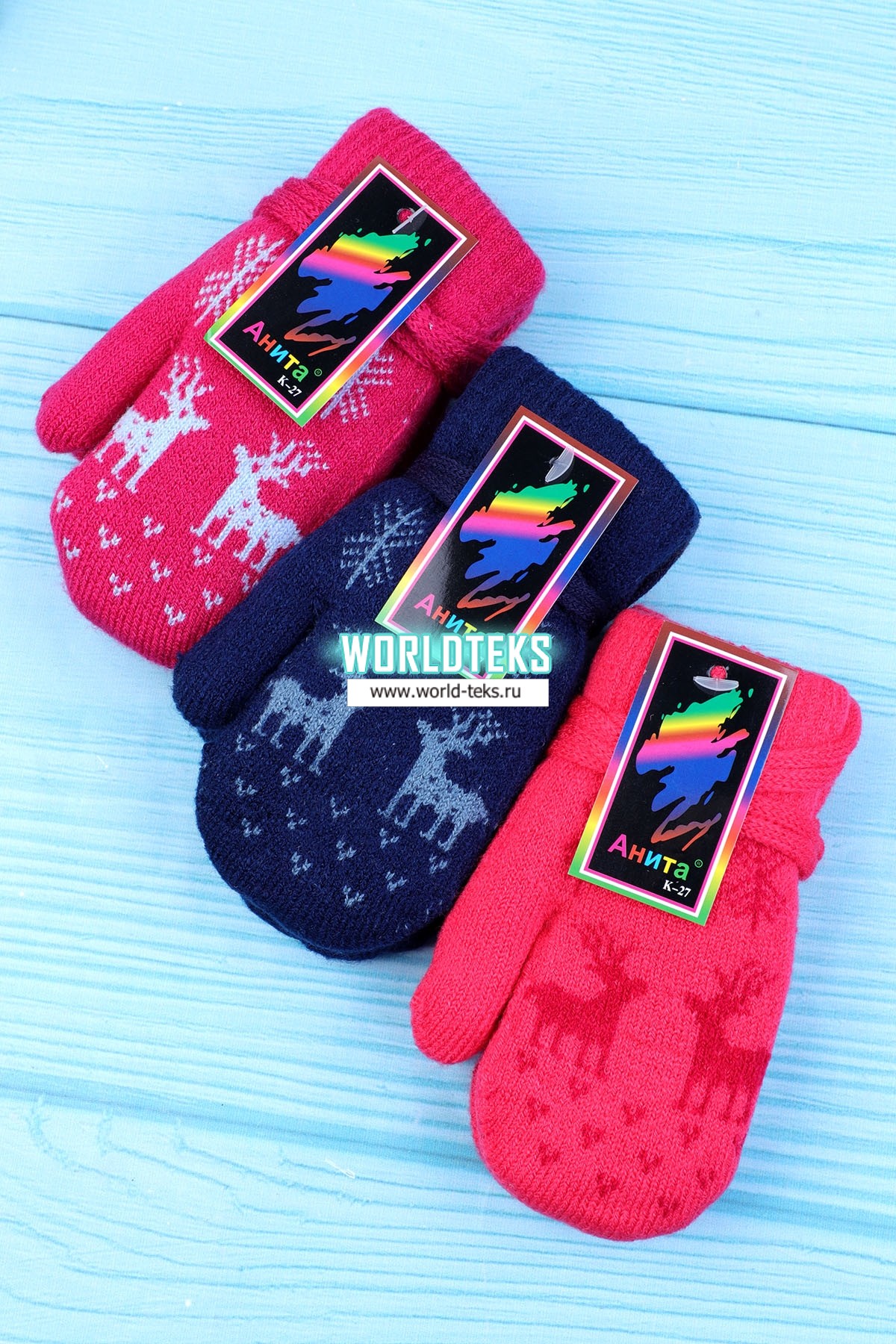 Варежки детские "Анита" (двойные, на меху) №ЧП27-4