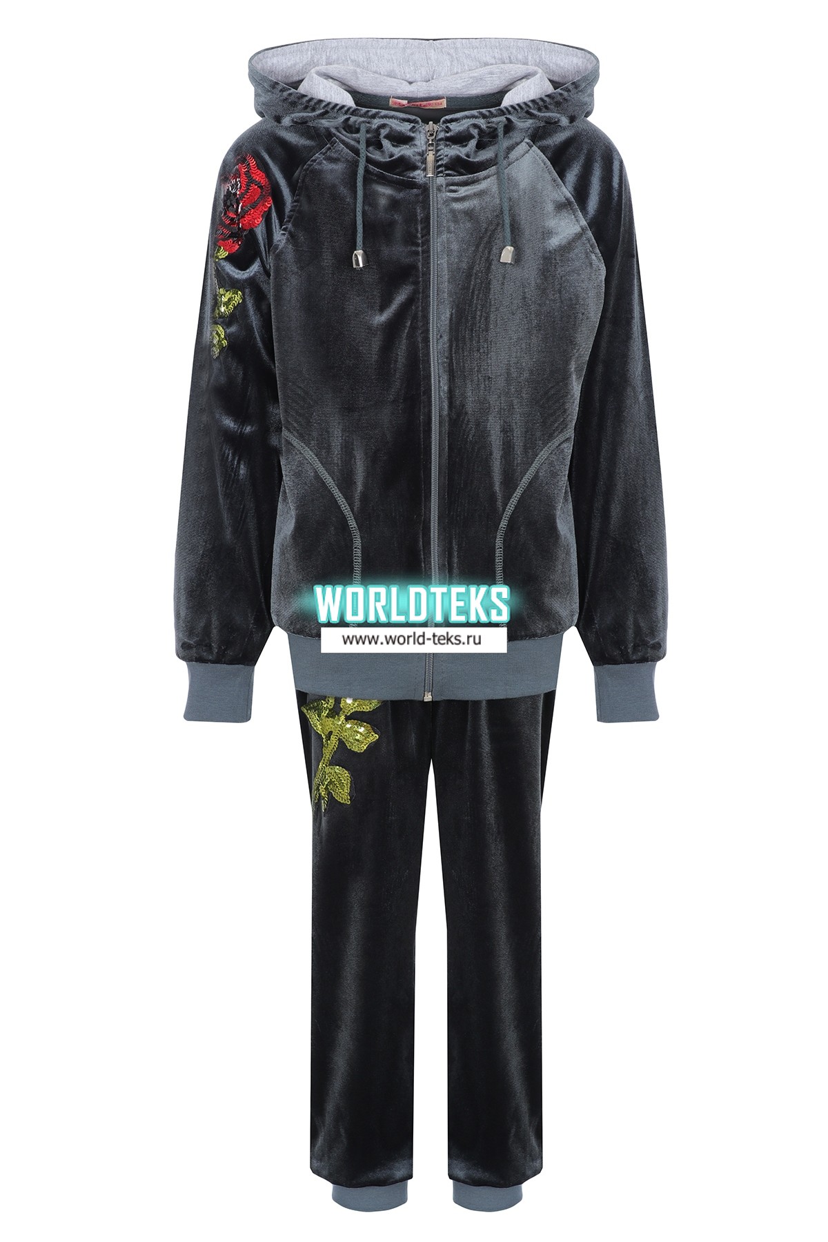 Костюм из королевского велюра, с отделкой, вышивкой или аппликацией из страз.