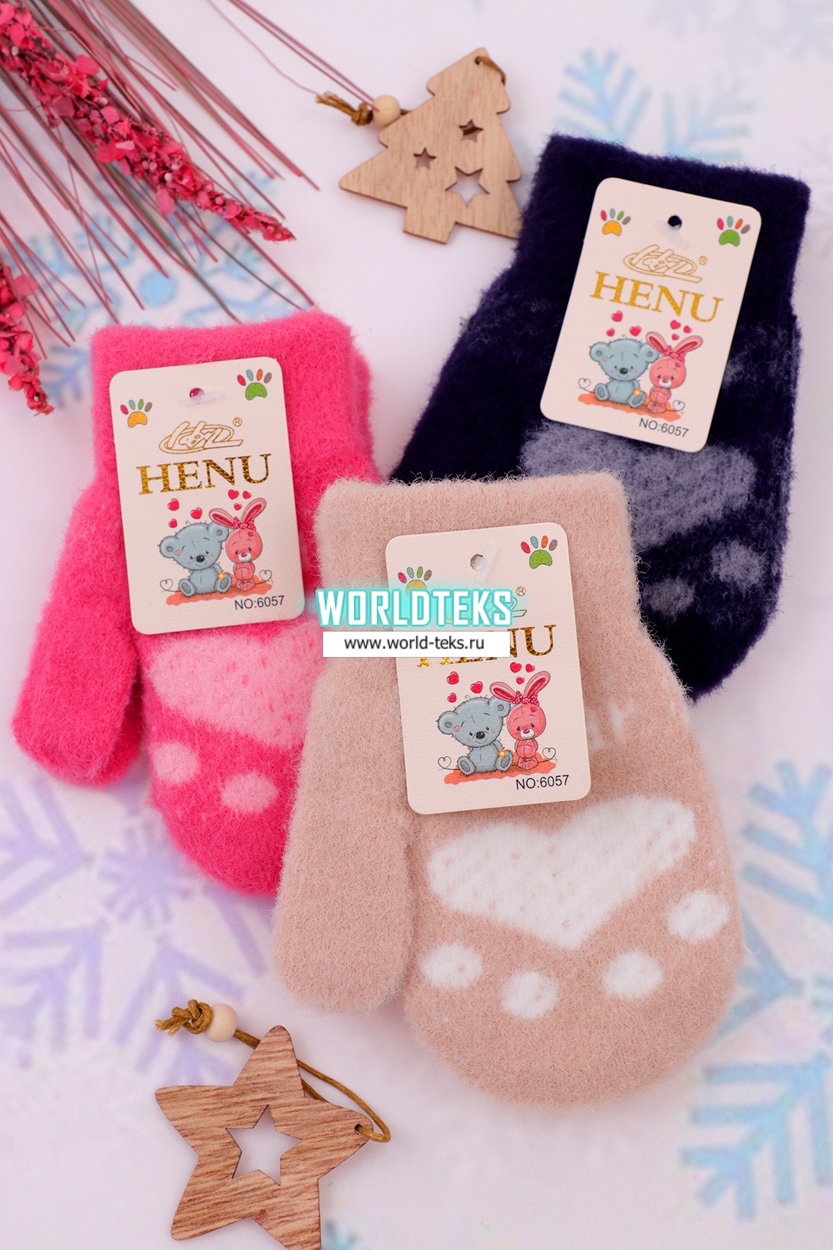 Варежки детские "HENU" (начёс, S) №ГП6057