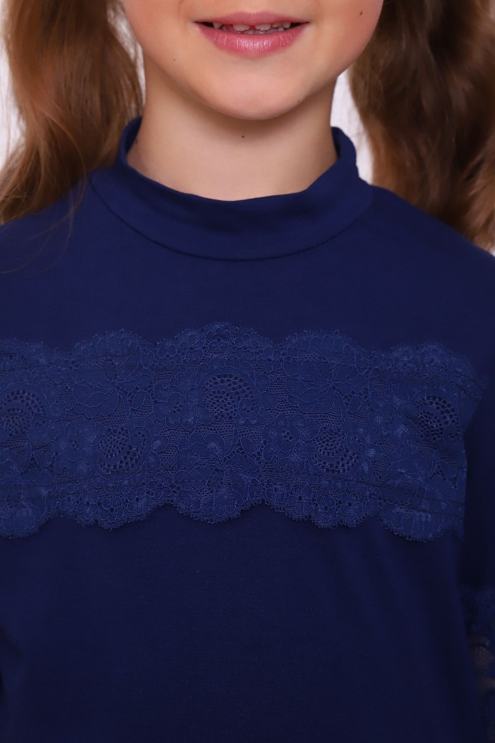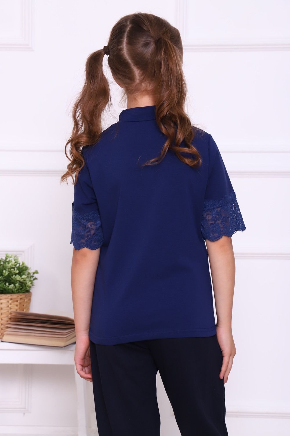 Школьная блузка для девочки с коротким рукавом. Мягкая трикотажная ткань и нежное кружево на рукавах и по переду изделия делают её универсальной - подходящей как для повседневной носки, так и для праздничных мероприятий. Узорчатый, полупрозрачный гипюр придаёт шарм этой модели. Модель составит одинаково удачный комплект и с юбкой, и с брюками. Воротник-стойка, несмотря на отсутствие застежки, хорошо тянется. Блузка сшита из качественного трикотажа, используемый материал не теряет форму после многократных стирок, мягкий и приятный к телу, устойчив к износу. Для сохранения первоначальных свойств изделия, важно соблюдать рекомендации по уходу.