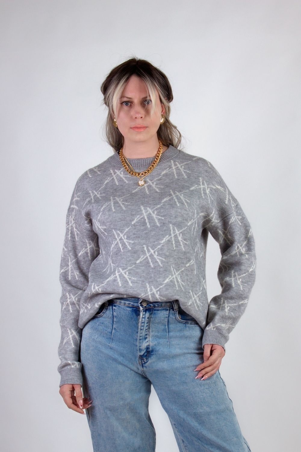 Джемпер Штрихи арт. - светло-серый №Н-1897