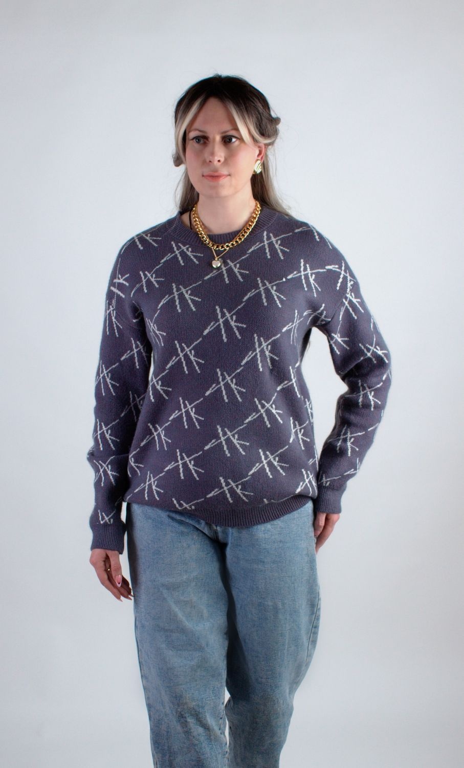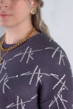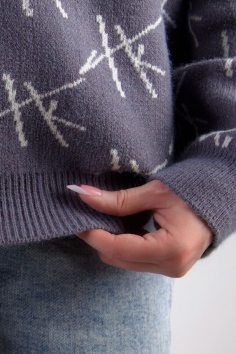 Джемпер Штрихи арт.1897 - стильный джемпер с современным рисунком: по всей поверхности изделия тонкие перекрещенные «палочки» словно собраны в небрежные пучки. Эта оригинальная геометрия придает модели динамичность и торжественность одновременно. Джемпер изготовлен из высококачественного акрила нового поколения — материал отличается особой мягкостью и бархатистым пушистым ворсом, напоминающим ангорку, но при этом не вызывает зуда и не колется. Он превосходно сохраняет тепло, не деформируется при носке и прост в уходе: достаточно деликатной стирки при низкой температуре и минимальной сушки без отжима. Модель выпускается в универсальном размере 42–50: за счет эластичного состава акрила джемпер легко адаптируется к силуэту, подчеркивая талию и мягко обрамляя бедра. Особое внимание уделено деталям: манжеты на рукавах, горловина и резинка по низу изделия выполнены иной вязкой — более плотной и собранной, что предотвращает растягивание и сохраняет аккуратный силуэт. Такая контрастная отделка делает образ завершенным и визуально стройнит.