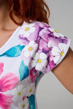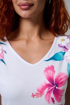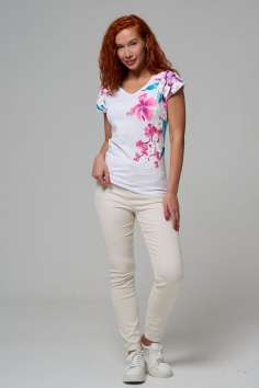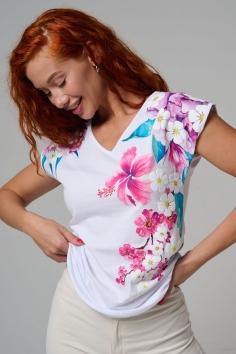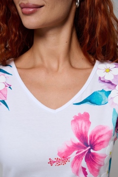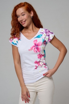 Футболка полуприлегающего силуэта, средней длины, с V-образной горловиной. Рукав цельнокроеный, короткий. Горловина и пройма обработаны бейкой из основного полотна. допустимо различие в цвете от представленного на фото.