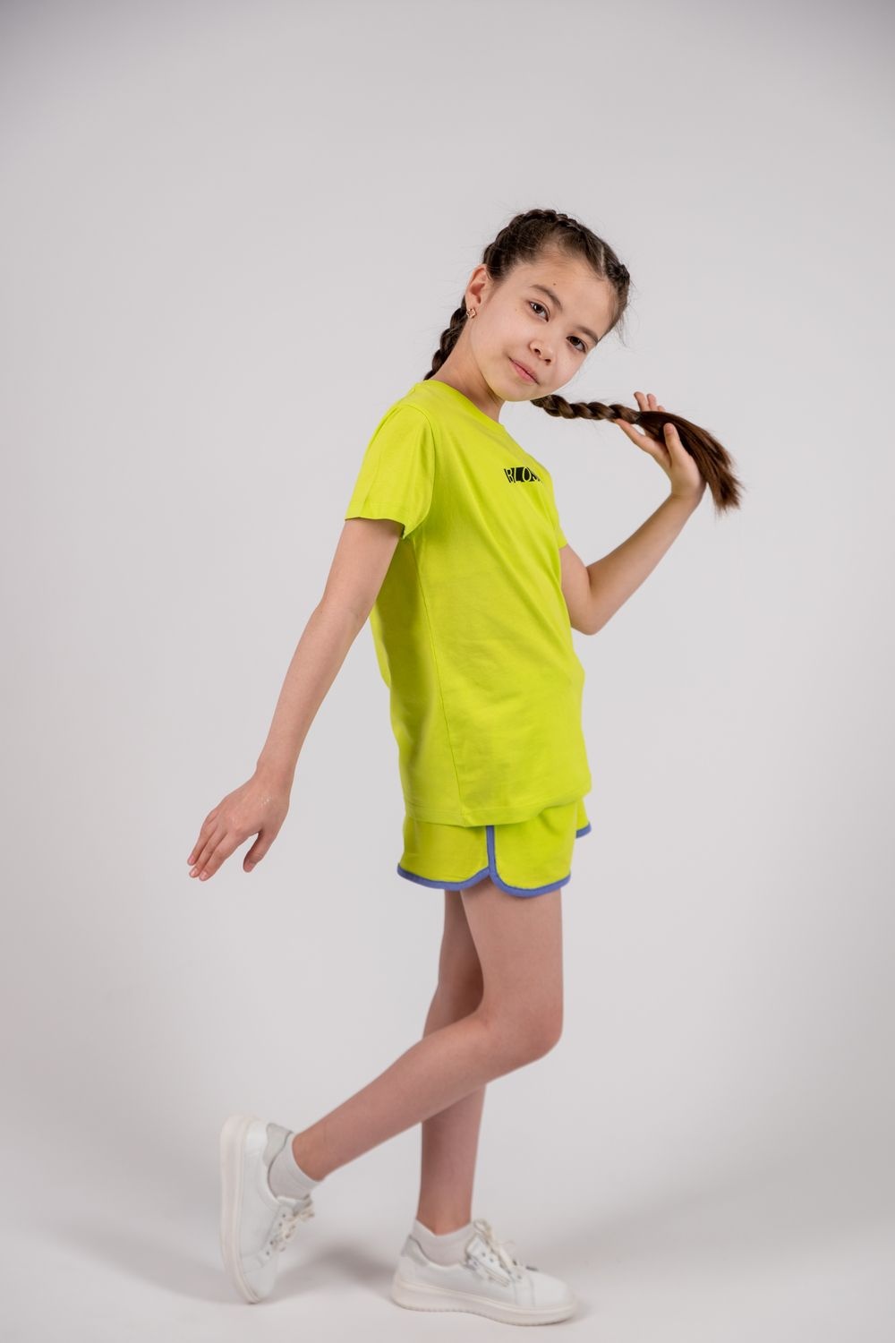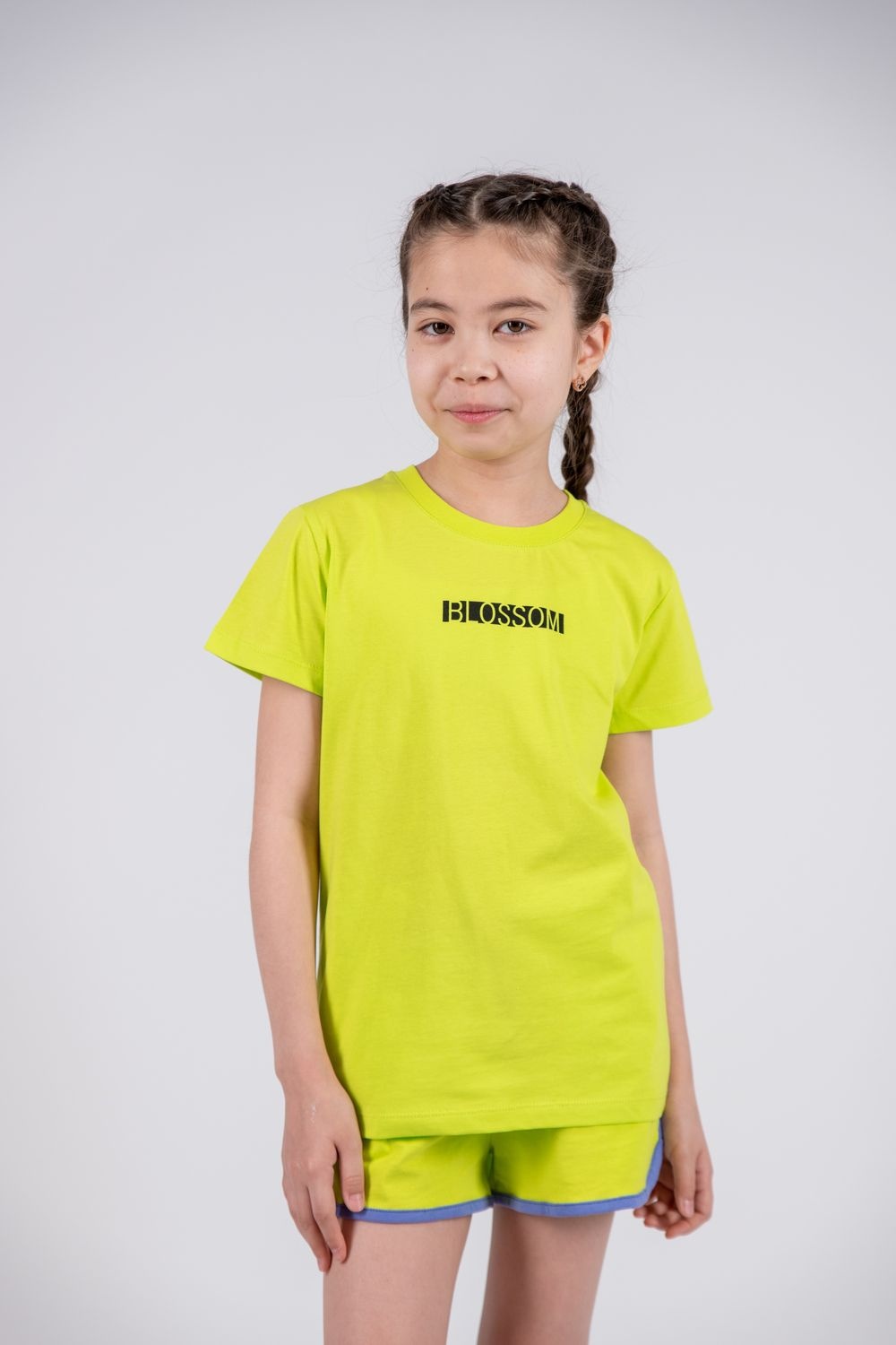 Футболка для девочки выполненная из мягкого хлопкового трикотажа, который прост в уходе, позволяет телу дышать и комфортен в носке. Футболка прямого силуэта, с втачным коротким рукавом. Принт Шелкография. Надпись переводится как 'Цвети'. Благодаря эластичной горловине, выполненной из рибаны, футболку удобно снимать и надевать. Материал не растягивается и не деформируется.