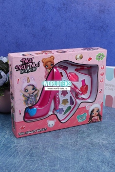 В наборе: тени, блеск для губ, две помады, лак для ногтей, две кисточки.