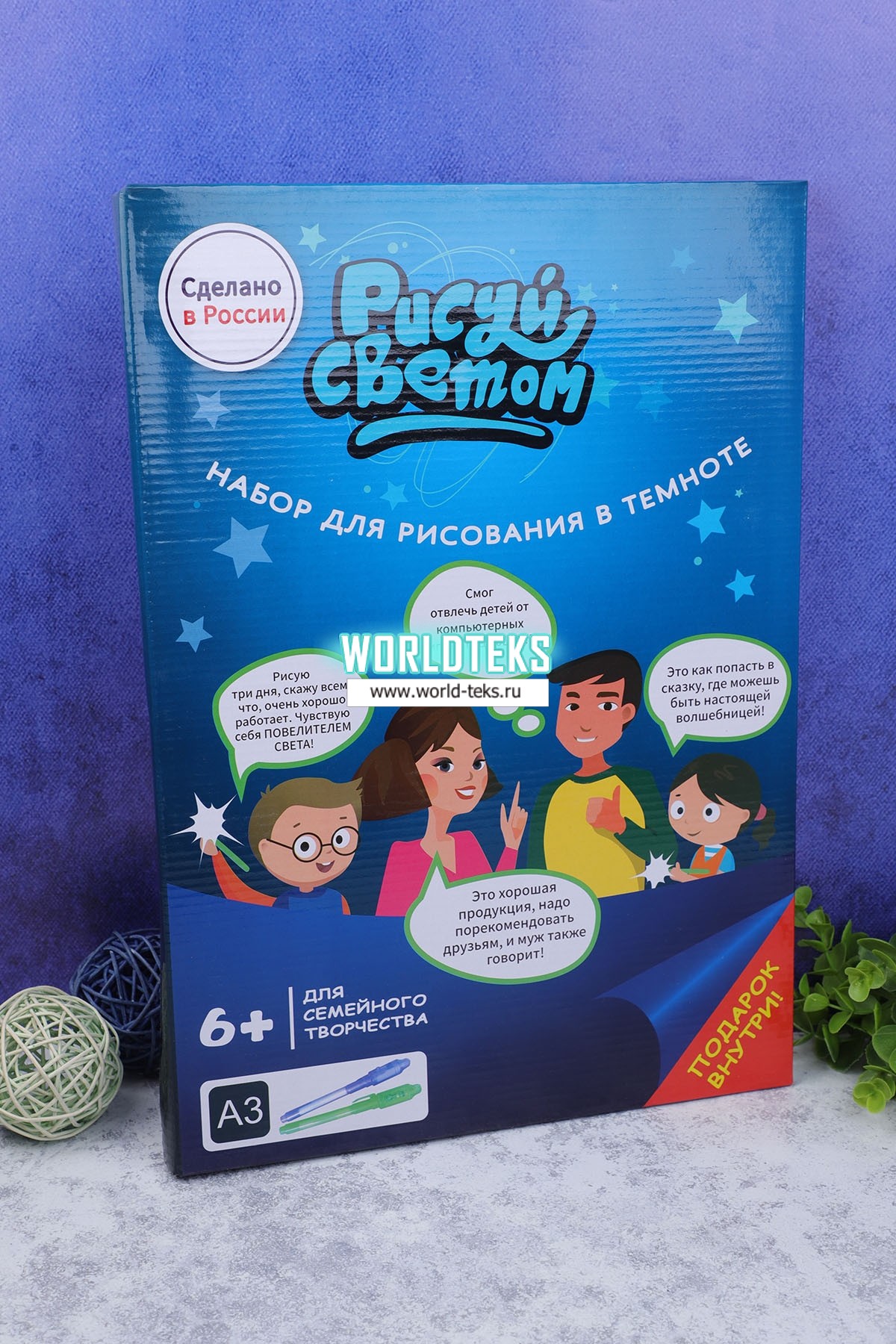 В наборе: инструкция, трафареты, планшет для рисования, две специальные ручки - работают от 3-х батареек LR44 (входят в комплект).