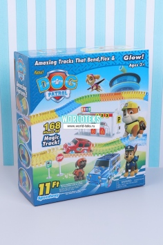 В набор входят: 168 гнущихся пластин, машинка, две собаки, ель, заправка.