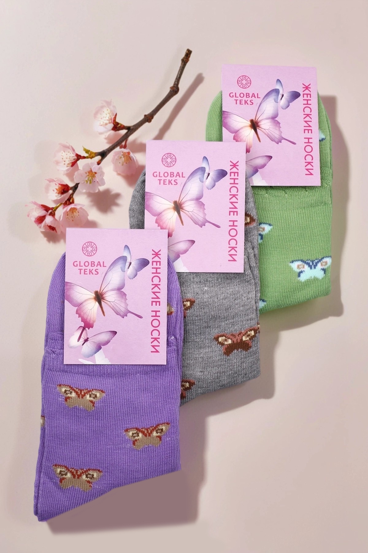 Носки женские средней посадки с удобной резинкой, которая не сдавливает ногу. Носки выполнены из хлопка с добавлением синтетических волокон для лучшей посадки по ноге.