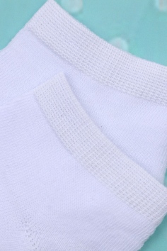 Короткие белые женские носки с удобной эластичной резинкой, которая не даёт носкам спадать и не сдавливает ногу. Носки выполнены из хлопка с добавлением синтетических волокон для лучшей посадки по ноге. Без шва.
