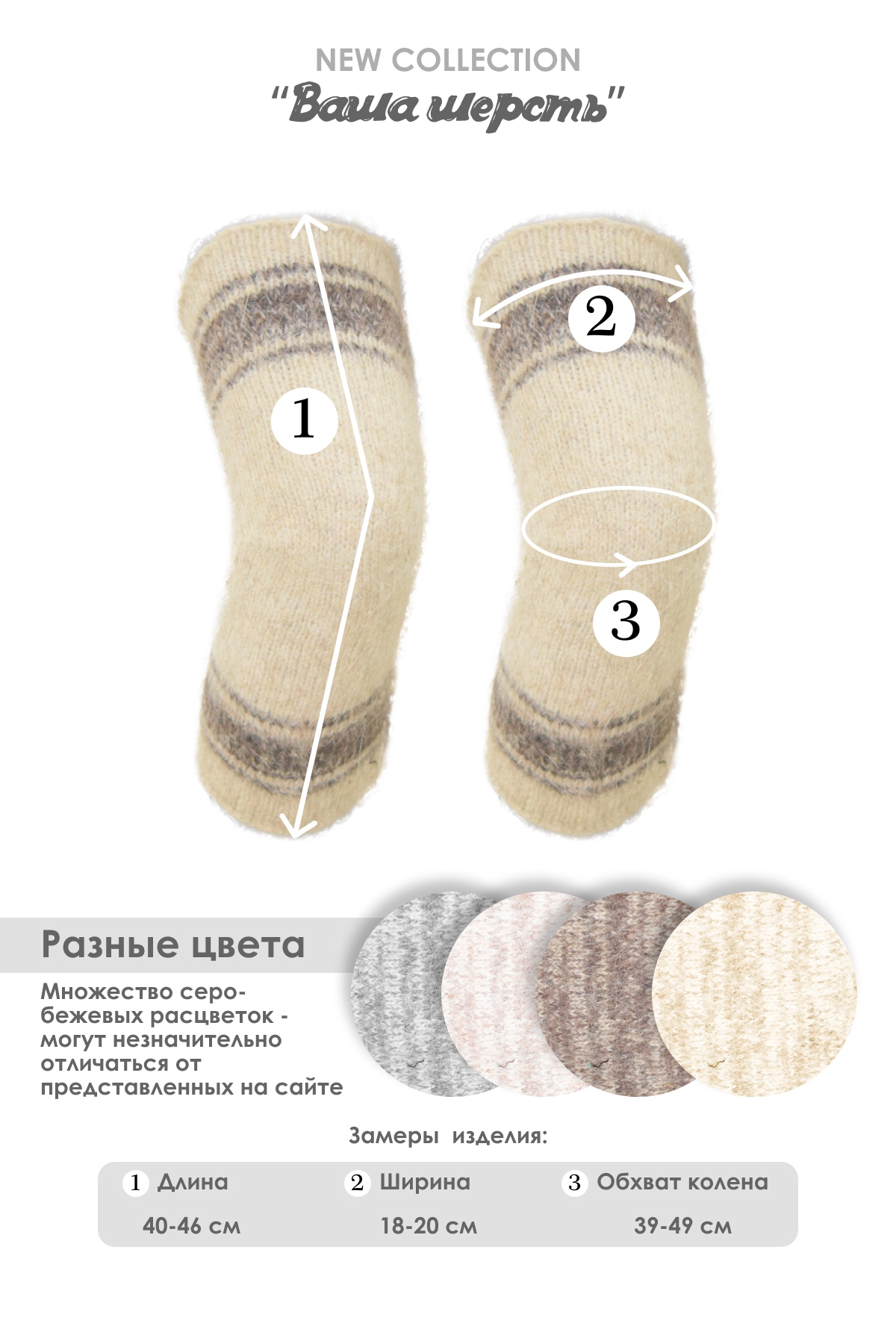 Наколенники из натуральной шерсти. Применяются при болях в коленях и локтях. Незаменимы в холодное время года.