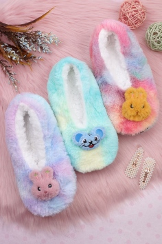 Разноцветные тапочки с разными мордочками животных.