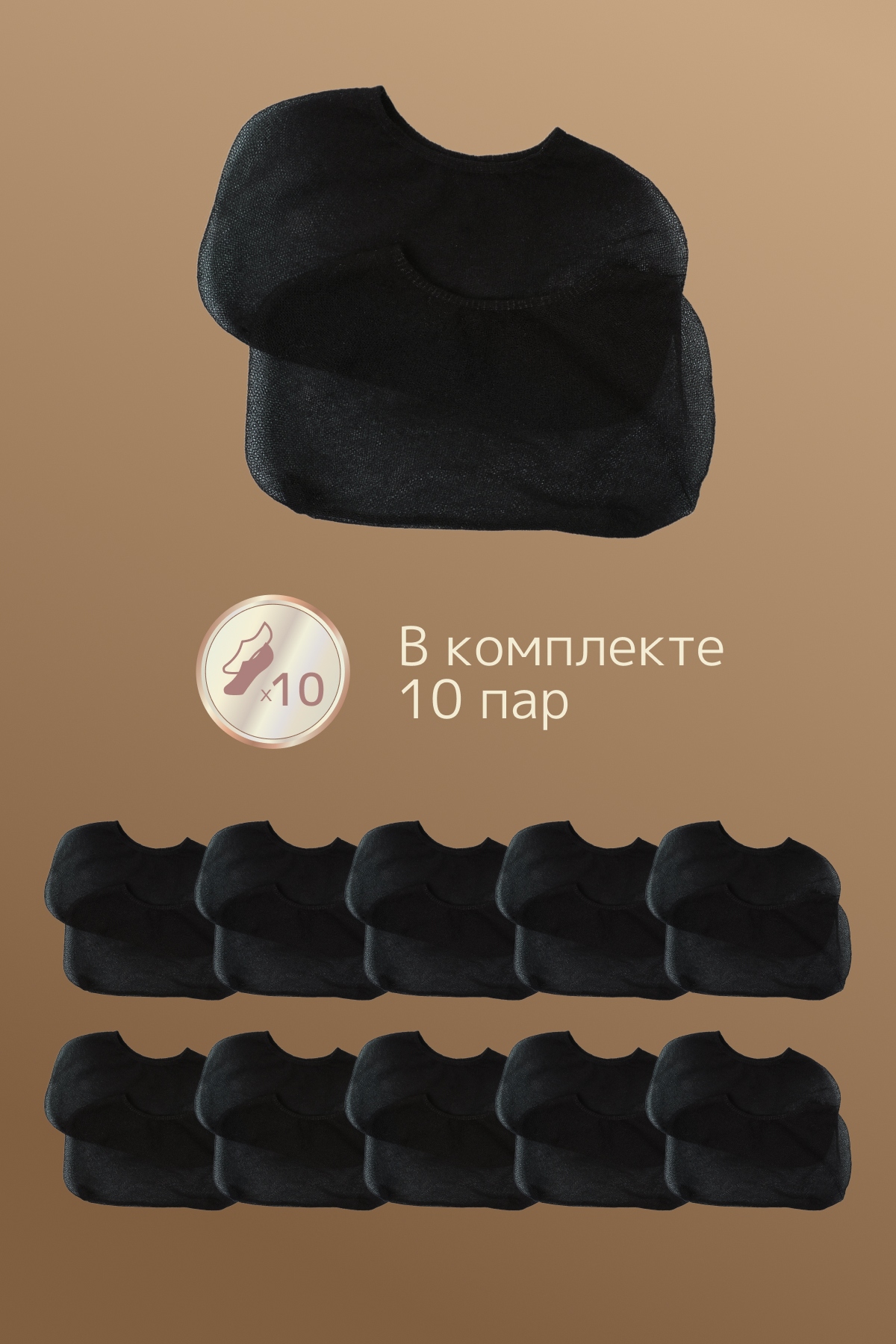 В упаковке 10 пар (один цвет и размер).