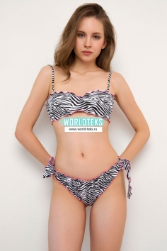 Без косточек и без Push-up, со съемными чашками, на завязках, на регулируемых тонких лямках, лямки отстегиваются.