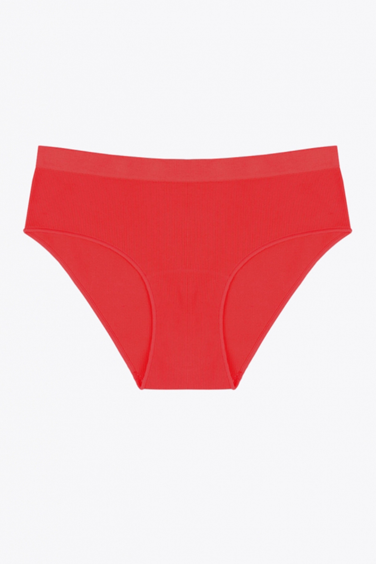 Трусы-слипы из полиамида, красного цвета, в рубчик, на мягкой резинке, с высокой посадкой.