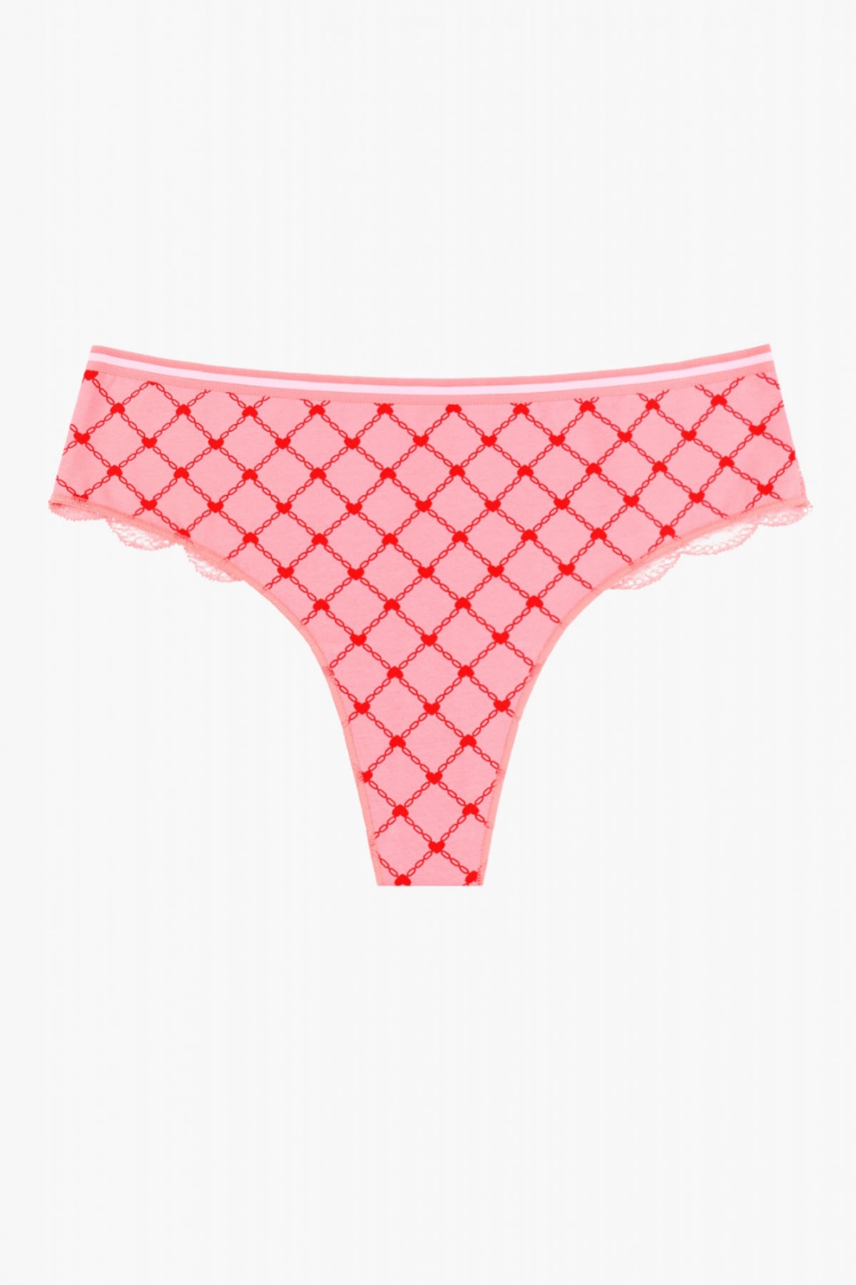 Женские трусы-стринги из хлопка в ярком розовом цвете с красным принтом и с кружевными узорами - это отличный выбор для любой женщины. Эти трусы не только комфортны благодаря использованию хлопка, но и являются ярким акцентом, добавляющим светлости и энергии вашему образу. Они отлично подчеркивают женственность, а их превосходный дизайн и красивые оттенки делают их по-настоящему привлекательными. Кружевные узоры придают им стильность и элегантность.