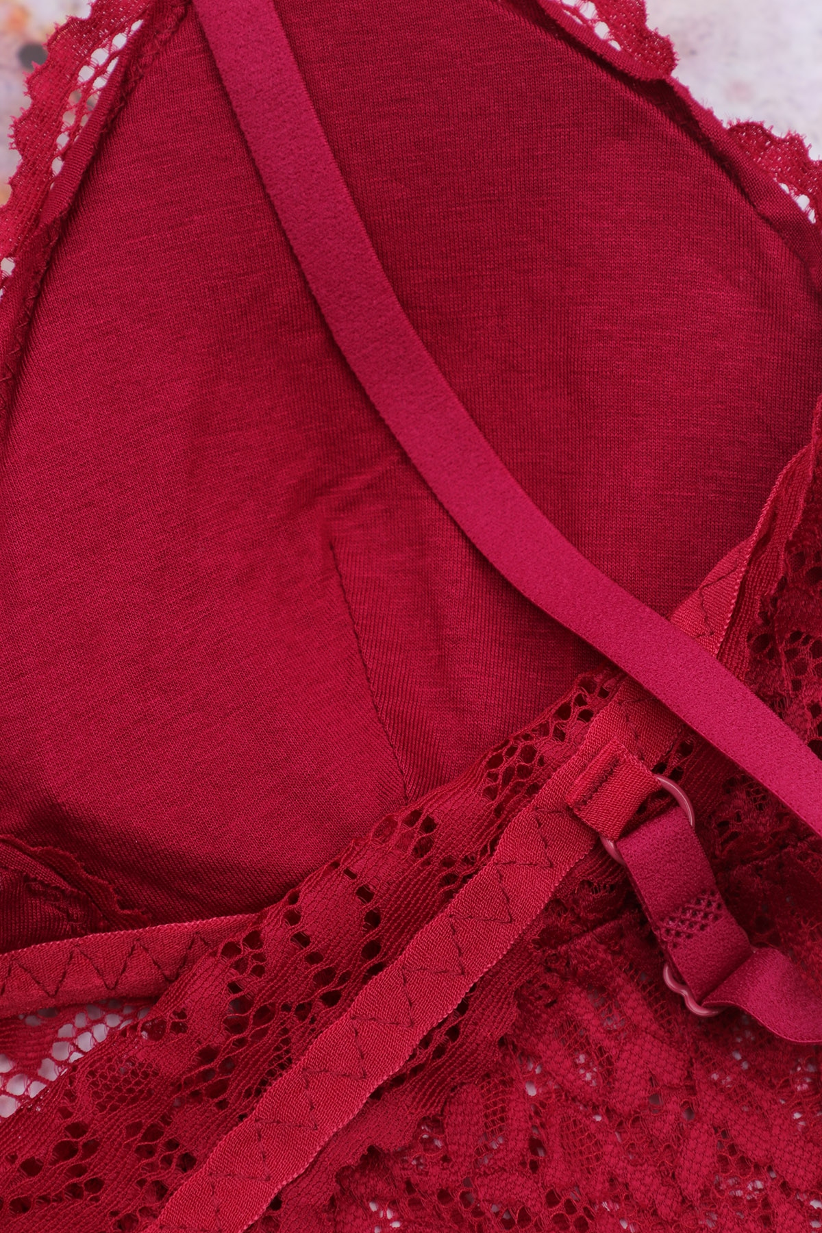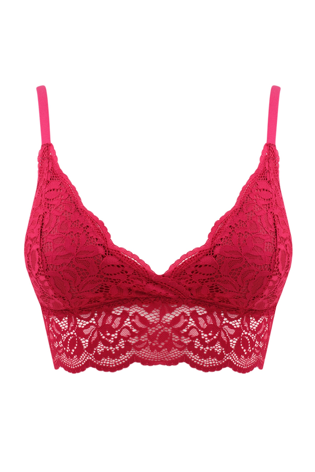 Красивый кружевной бюстгальтер-топ женский на тонких эластичных регулируемых бретелях. Топ без металлических застёжек и без косточек. Имеются тонкие съёмные вставки из поролона. Лёгкий и не стесняет движений.