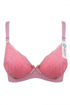 Женский бюстгальтер с формованными чашечками и с косточками. Застежка на крючки и петли сзади. Съемные бретели регулируются по длине. Бюстгальтер украшен тонким кружевом на чашечках и бантиком посередине.