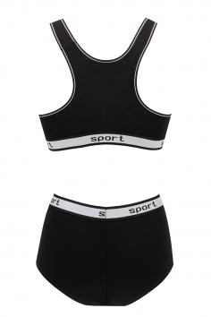Бельевой комплект женский: бюстгальтер-топ, трусы. Бюстгальтер-топ на узких лямках и удобной эластичной резинке под грудью. Топ с формованной чашкой, без косточек, без металлических застёжек. Трусы-шорты средней посадки с эластичными мягкими резинками.