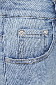 Шорты являются актуальным предметом гардероба в летний период. Данная модель женских джинсовых шорт без отворота выше колена, с высокой посадкой и шлёвками под ремень. На шортах спереди имеется три кармана (два внутренних и один маленький накладной) и два накладных кармана сзади. Сзади на пояс на резинке. Застёжка: молния+пуговица.
