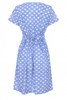 Халат женский на молнии, с коротким рукавом. По бокам дополнительные завязки в области талии.