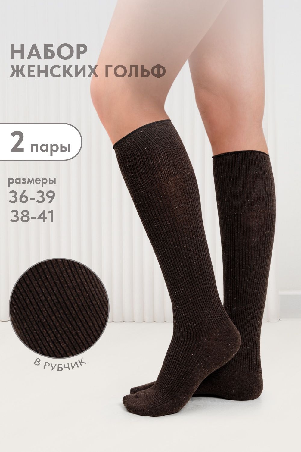Гольфы женские Ретро (набор 2 пары) - коричневый