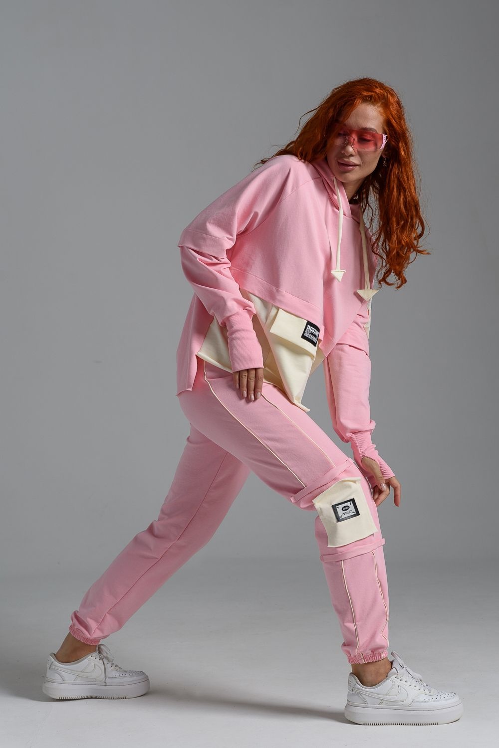 Стильные женские брюки. Необычный дизайн. Пояс эластичный. Модель подойдет для прогулок и повседневной носки. Материал хорошо пропускает воздух. Отлично будут смотреться на девушках в спортивном стиле.