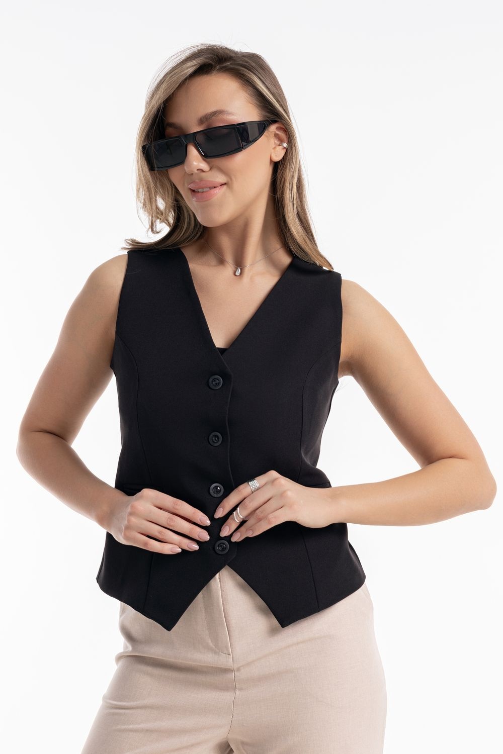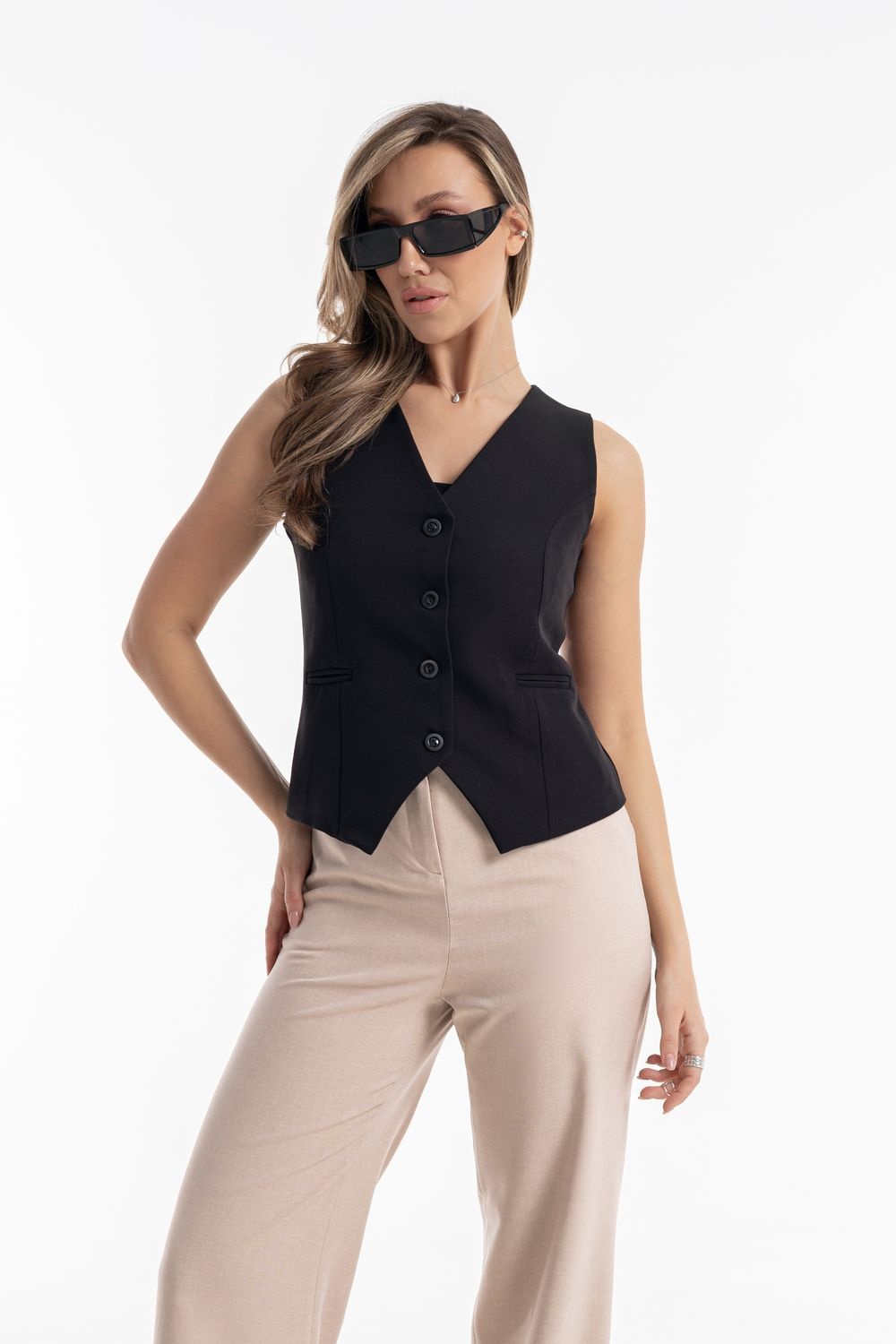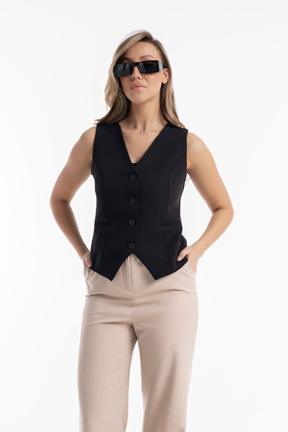 Женский классический жилет на пуговицах - воплощение привлекательности, эстетичности и неотъемлемая вещь базового гардероба любой модницы. Мы создали универсальный жилет как для повседневной носки, так и для офиса. В нем сочетаются все современные тенденции и элементы классического стиля. Женская костюмная жилетка прекрасно подходит под пиджак, к блузке, брюкам и юбкам. Она способна создать, как образ делового стиля, так и более свободного с кроссовками и джинсами.