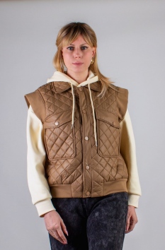 Жилет утепленный безрукавка арт. H025 – универсальный элемент гардероба, сочетающий в себе комфорт, практичность и современный стиль. Модель выполнена из качественных материалов, а простеганная конструкция (не ультрастеп) гарантирует равномерное распределение утеплителя, исключая возможность его скапливания в отдельных участках. Отложенный воротник придаёт жилету аккуратный вид, а застёжка на планке с металлическими кнопками в цвет изделия делает образ целостным и функциональным. Нижний манжет изделия выполнен в трикотажной технике, идеально облегающей и гарантируя свободу движений. В тон изделия оформлены и укороченные «рамочные» рукава-накладки на плечах, которые органично разбавляют строгую стёжку и визуально смягчают силуэт. Это небольшое дизайнерское решение делает жилетку более женственной и универсальной: её легко сочетать как с объёмными свитерами и рубашками, так и с тонкими джемперами.