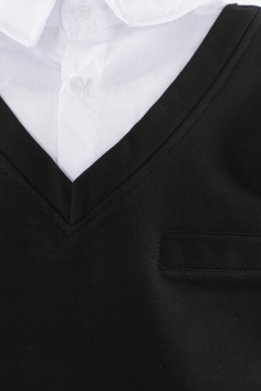 Кофта школьная на мальчика с имитацией рубашки. Отложной воротник-стойка, длинные рукава, спереди имитация кармана.