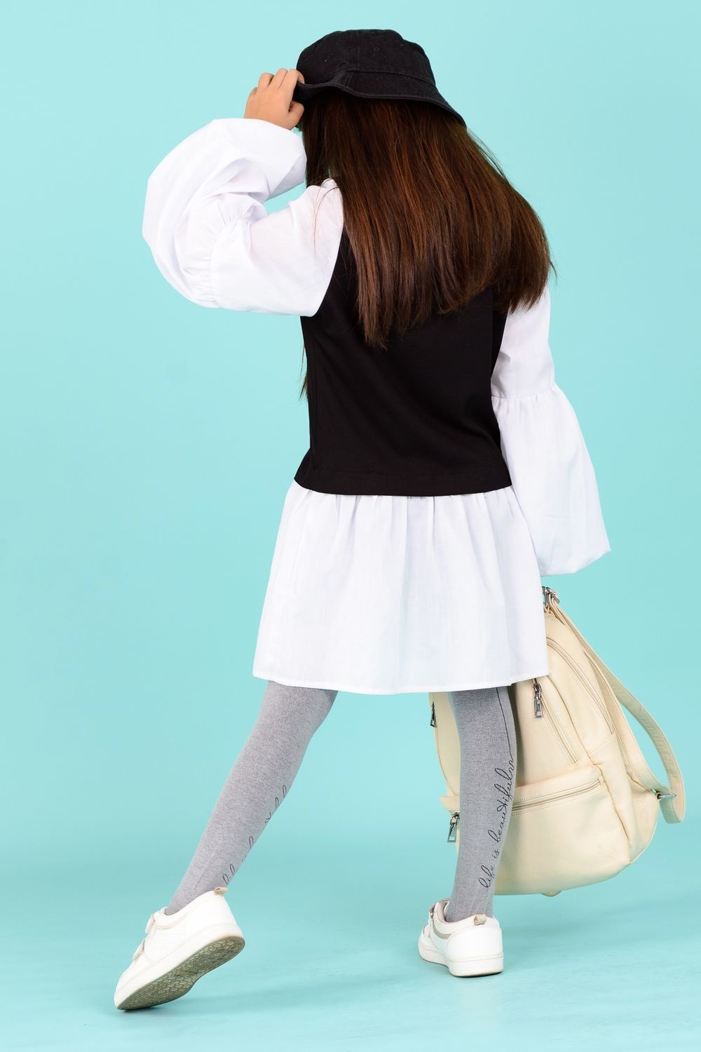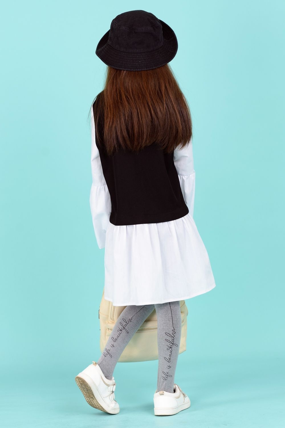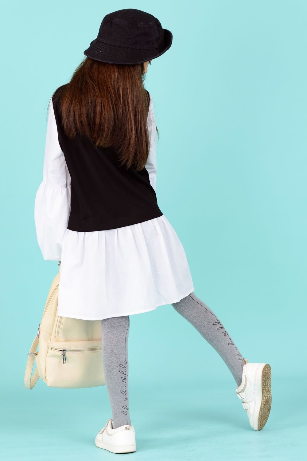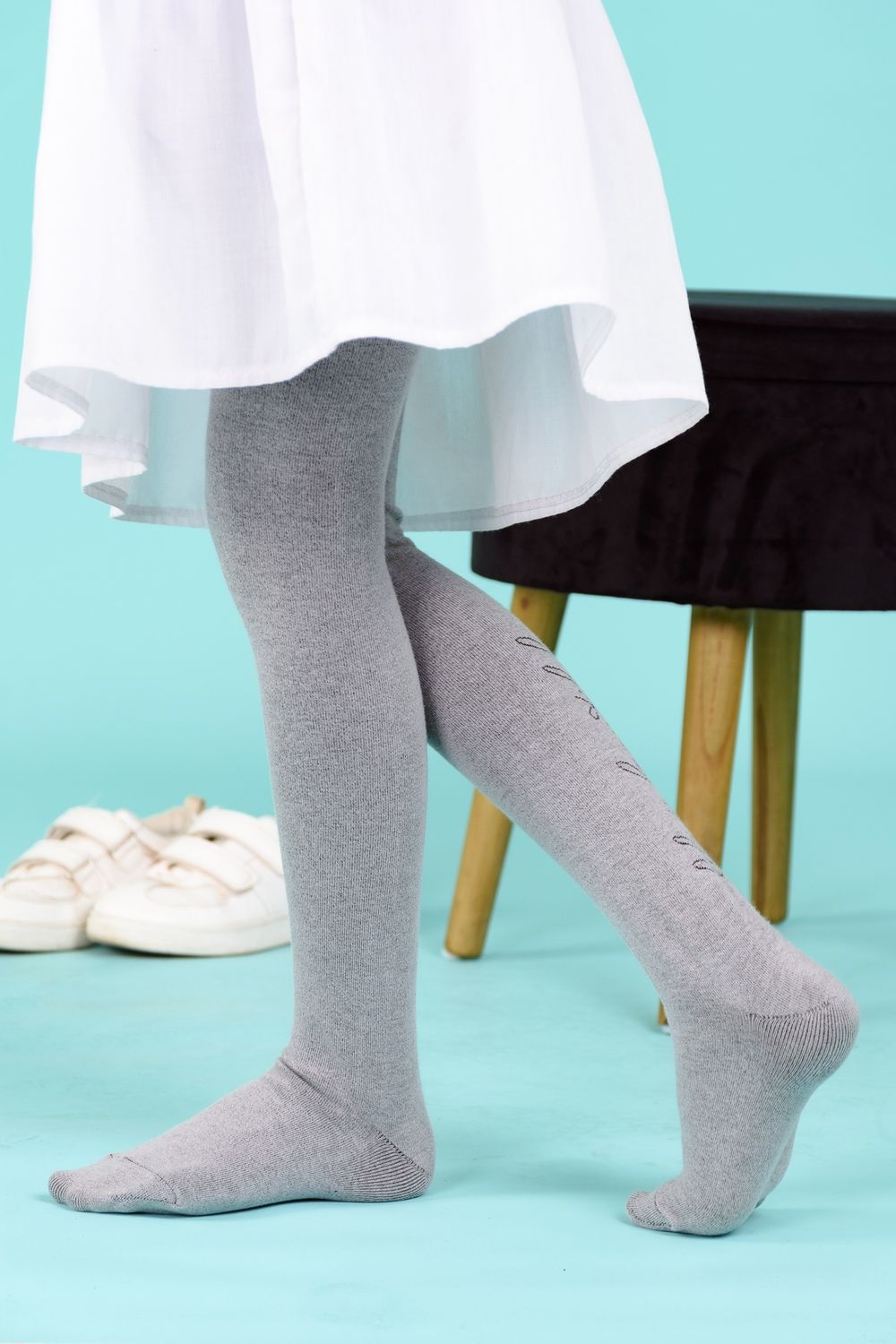 Однотонные колготки для школьников. Сзади вывязан лаконичный рисунок в виде строчки курсивом Life is beautiful.
