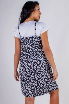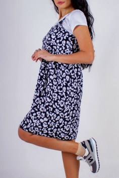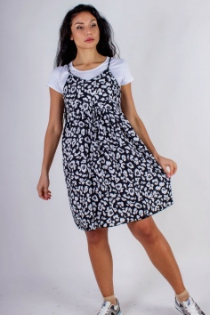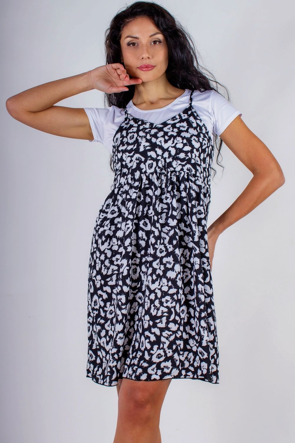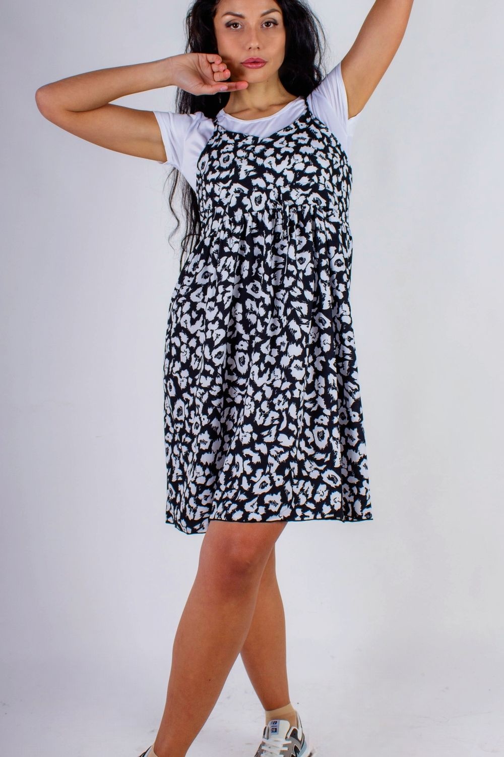 Комплект Сарафан с кокеткой+Футболка, арт. - Черный+белые штрихи №Н-8686