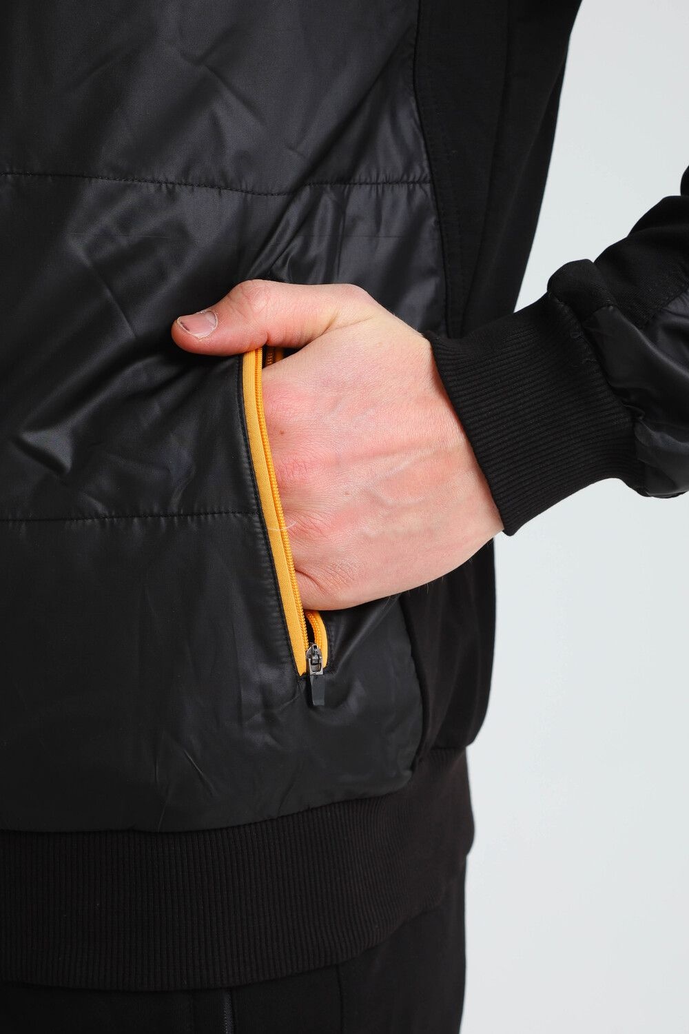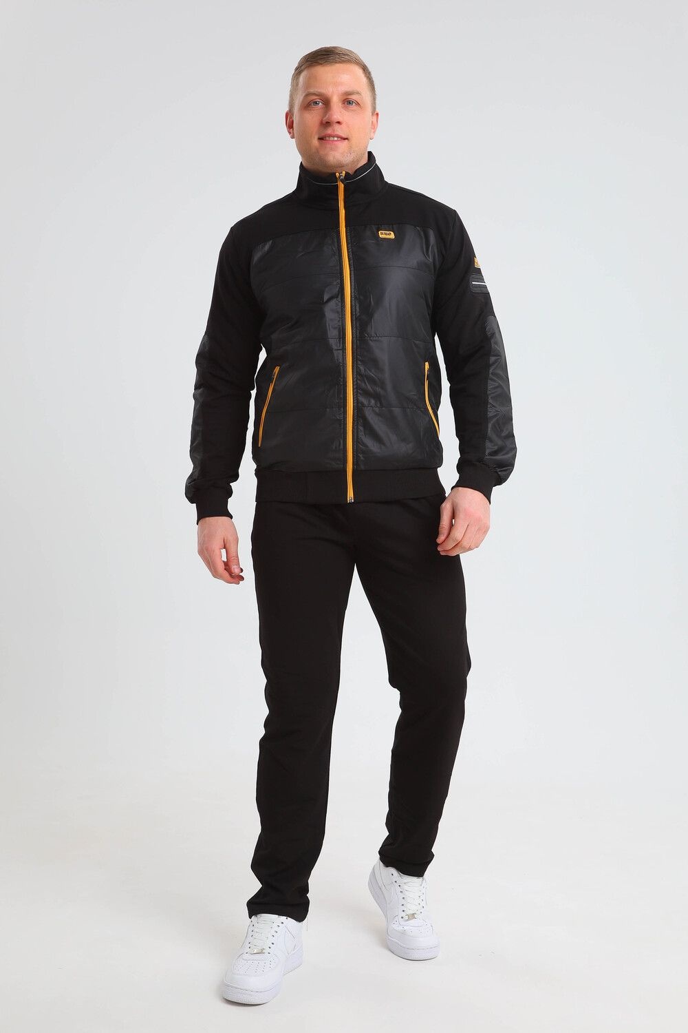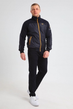 Спортивный мужской костюм. Кофта на молнии, спереди и на рукавах декоративная вставка из плащевки, сбоку вышивная надпись. Воротник - стойка, низ кофты и рукава на манжетах. Брюки прямого кроя, карманы на молнии. Костюм отличного качества из турецкой ткани. Подойдет для прогулок, спорта, отдыха.