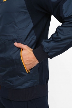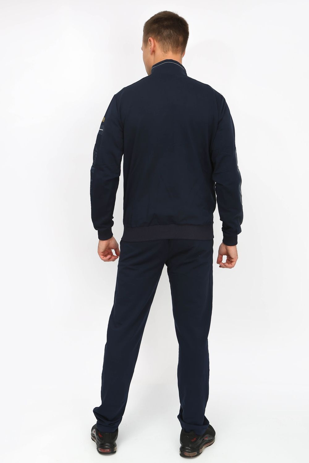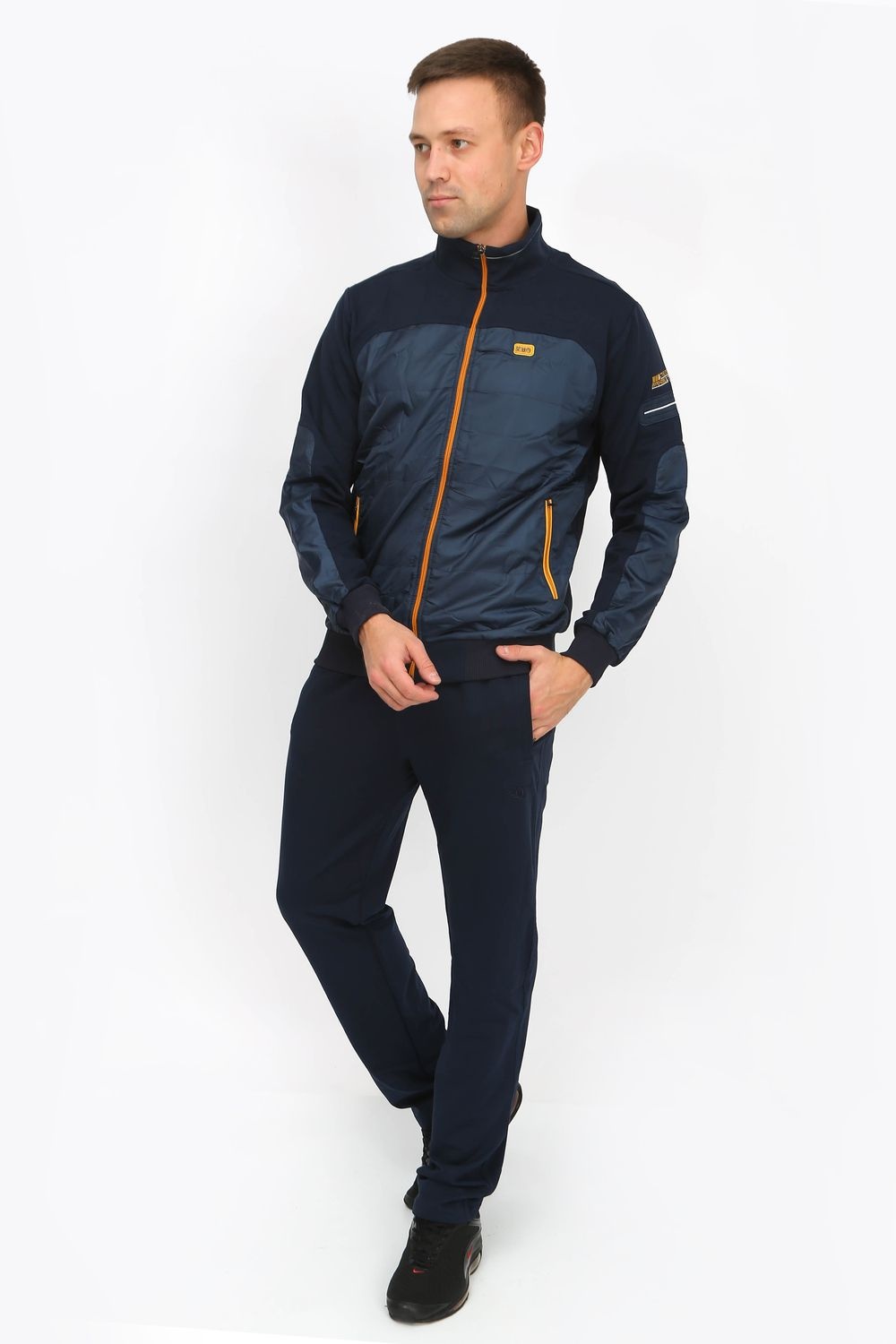 Спортивный мужской костюм. Кофта на молнии, спереди и на рукавах декоративная вставка из плащевки, сбоку вышивная надпись. Воротник - стойка, низ кофты и рукава на манжетах. Брюки прямого кроя, карманы на молнии. Костюм отличного качества из турецкой ткани. Подойдет для прогулок, спорта, отдыха.