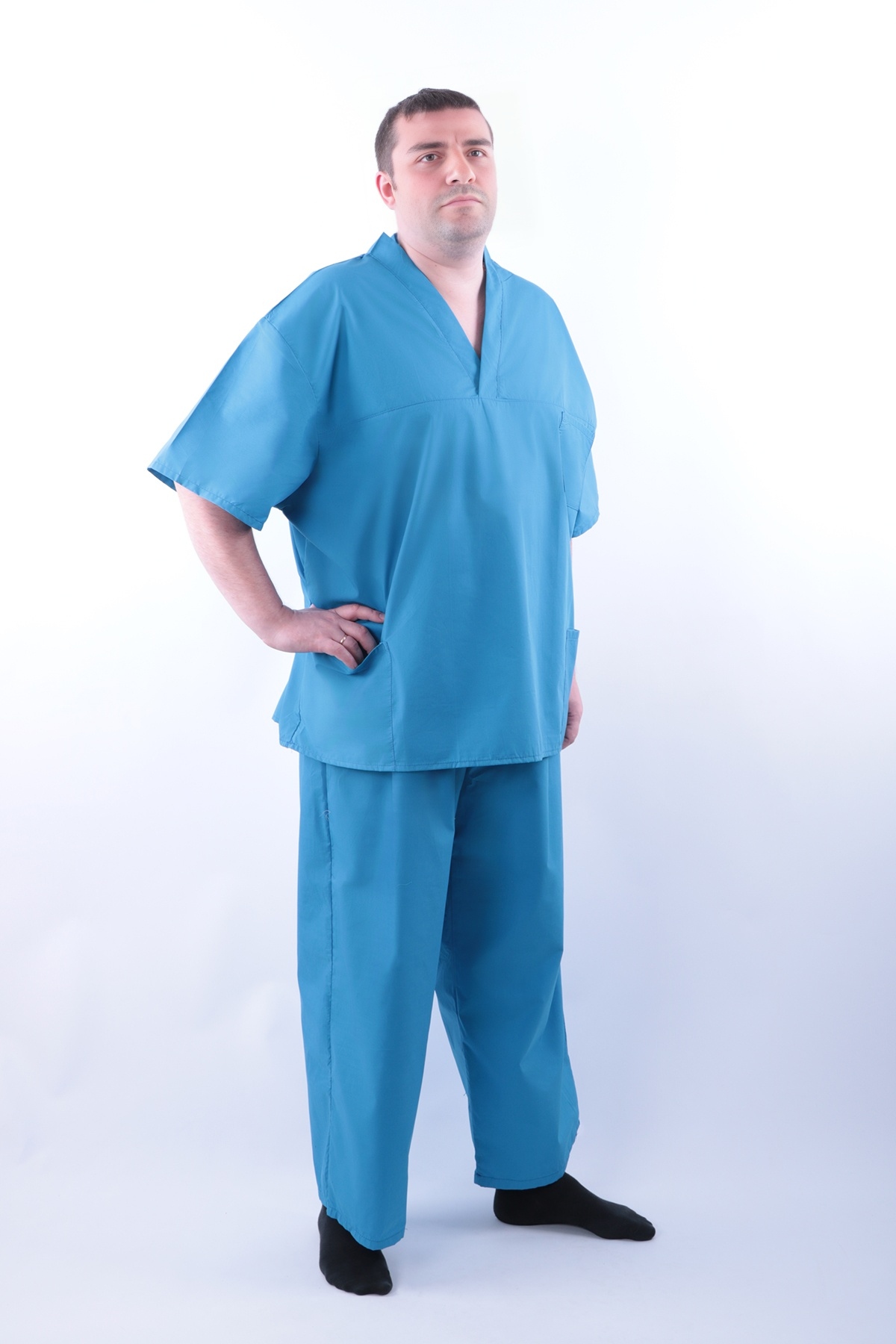 Представляем вам медицинский костюм для хирургов, который идеально подходит как для мужчин, так и для женщин. Комплектация медформы включает в себя блузу и брюки. Костюм изготовлен из хлопковой ткани, что делает его устойчивым к истиранию и при этом дышащим. Прямой свободный крой позволяет свободно двигаться во время работы. На блузе предусмотрено три кармана - один нагрудный и два боковых. Брюки этого костюма не имеют застежки и карманов. Пояс брюк выполнен на мягкой резинке, обеспечивая комфортную посадку.
