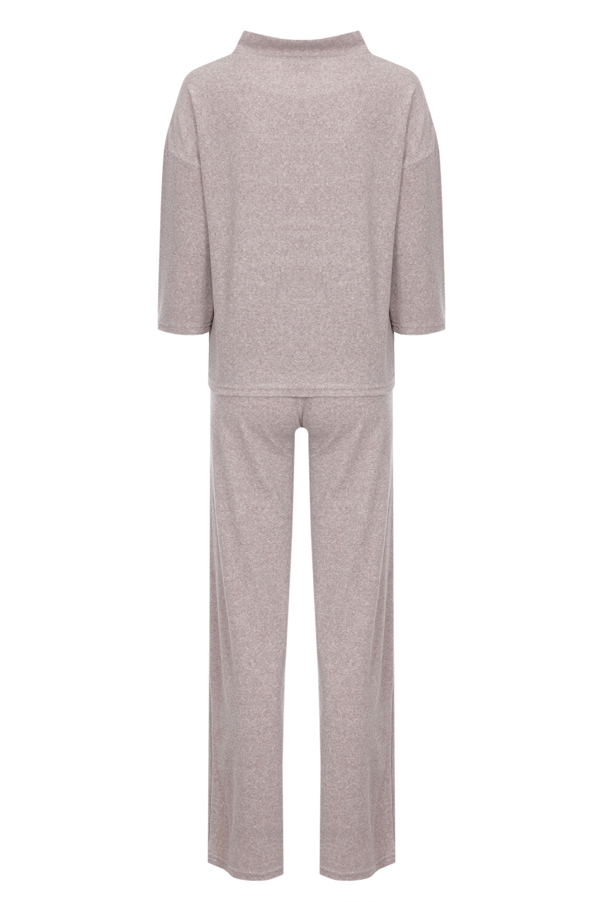 Женский костюм состоит из кофты и штанов. Кофта прямого кроя с рукавами 3/4 и коротким воротником. Штаны прямые с широкой эластичной резинкой в поясе. Мягкая и приятная к телу ткань.