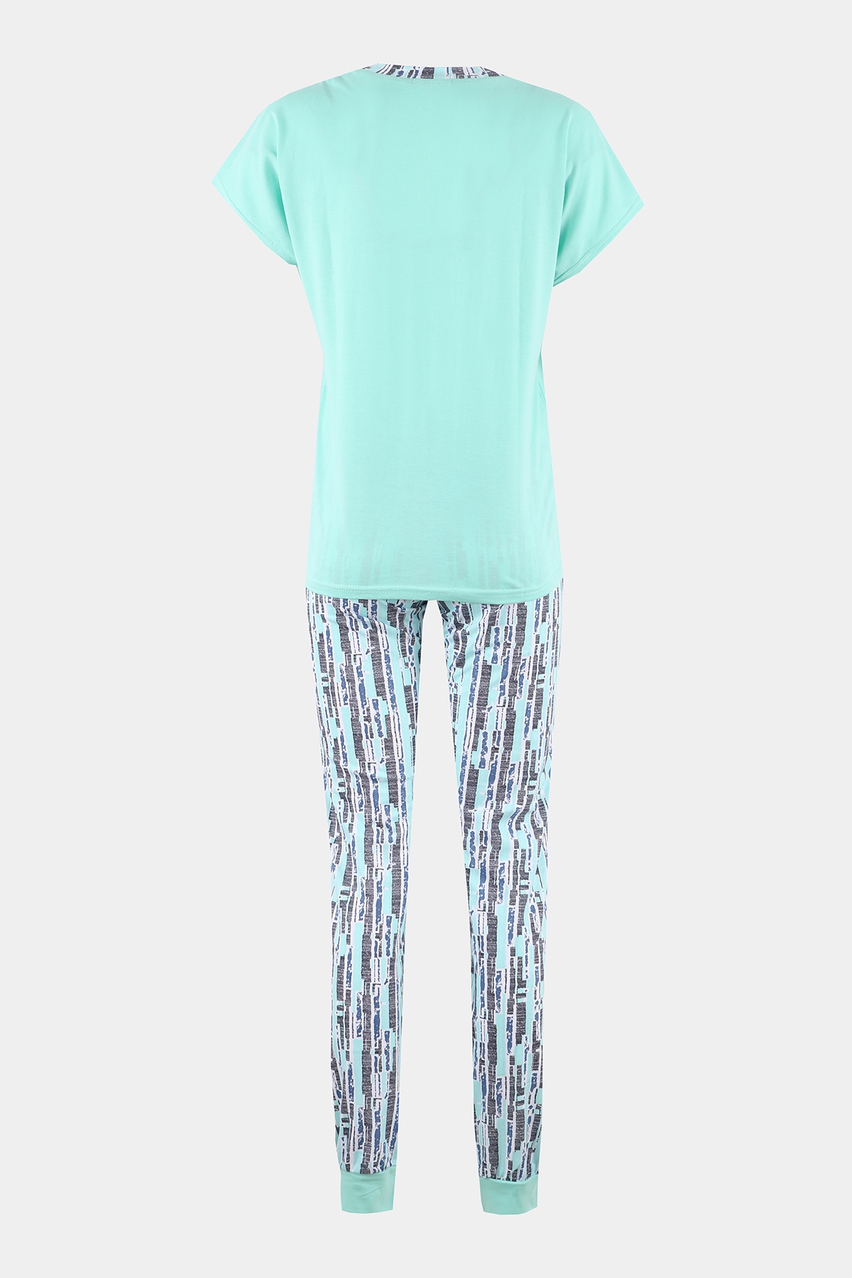 Яркий, модный, стильный женский костюм из мягкого трикотажного полотна высокого качества. Состоит из легкой футболки с ярким принтов на полочке и брюк. Универсальный и практичный повседневный костюм. Брюки имеют карманы по бокам и широкую эластичную резинку в поясе.