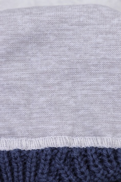 Тёплая шапка для мальчика на завязках с отворотом. У шапки хлопковая подкладка. Хорошо сидит на голове. Шапку украшает помпон.