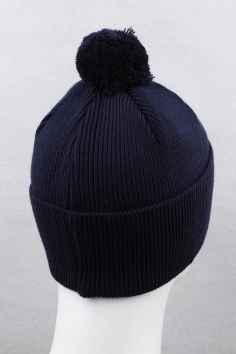 Шапка на мальчика без подкладки с отворотом. Отворот дополнительно согревает уши. Плотно прилегает к голове, хорошо тянется. Украшена помпоном и небольшой надписью.
