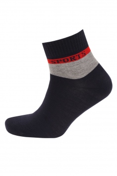 Носки мужские средней классической высоты, с небольшой надписью. Выполнены из хлопка с добавлением синтетических волокон для лучшей посадки по ноге.