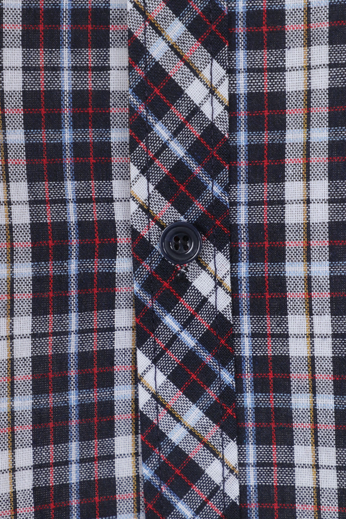 Рубашка считается базовой вещью мужского гардероба. Мужская рубашка на пуговицах в клеточку с короткими рукавами и воротником-стойкой на пуговице. Спереди два накладных кармана на пуговице. Удобная и не сковывает движения.